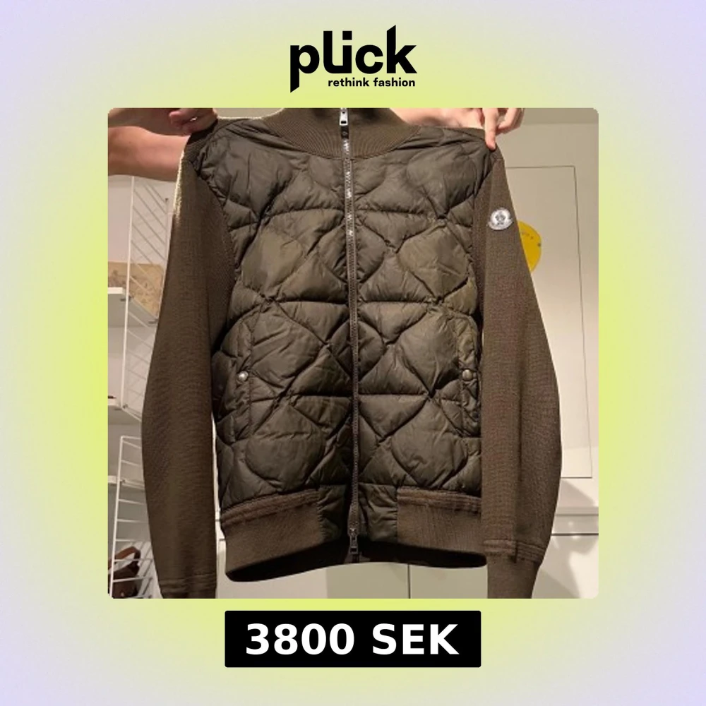 Säljer en snygg olivgrön quiltad cardigan från Moncler. Unik då få personer har just denna modell. Storlek s, perfekt till våren och hösten.