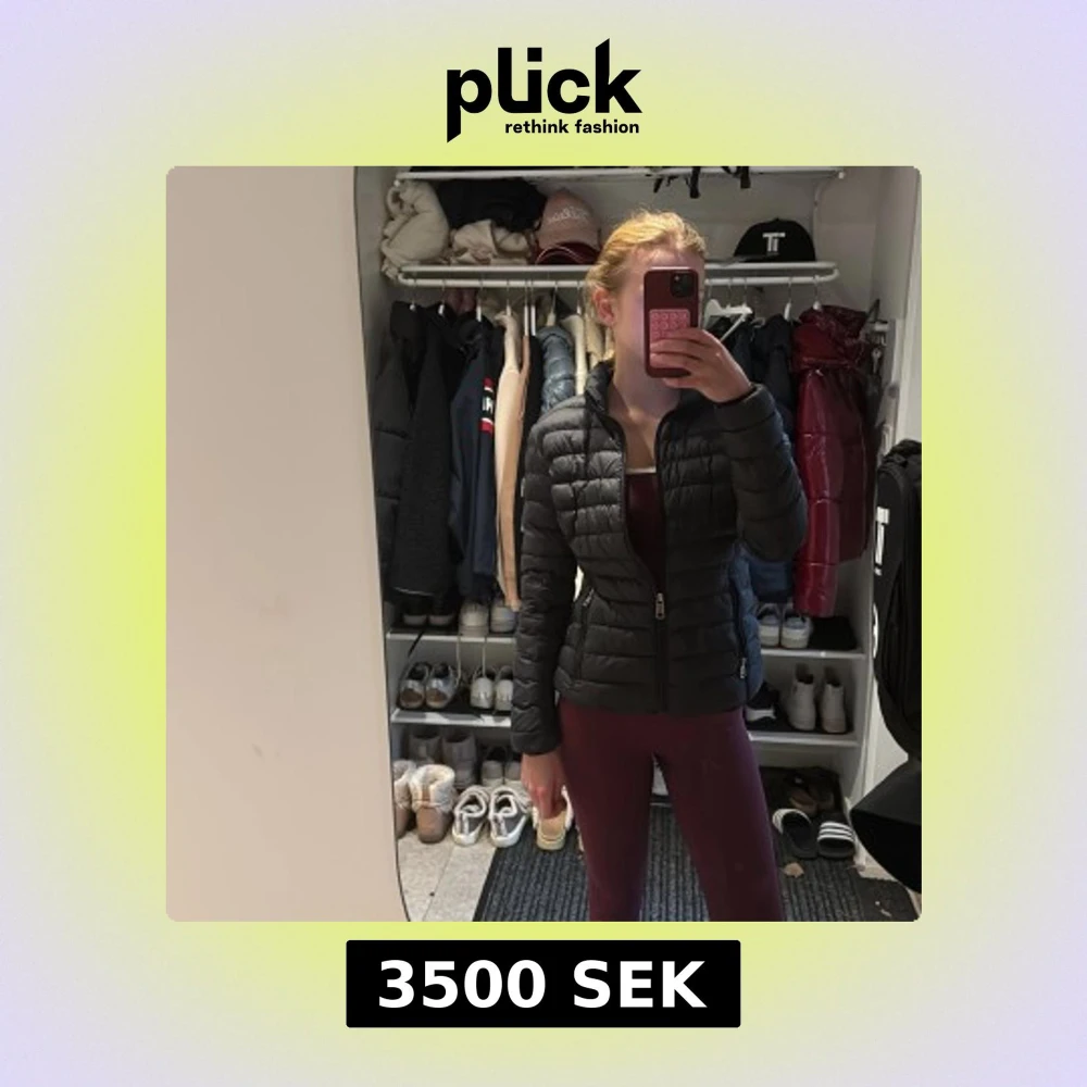 Säljer en svart dunjacka från Moncler med quiltad design och figurnära passform. Jackan har hög krage, dragkedja framtill och Moncler-logga på ärmen. Storlek 0 vilket mossvarar ca xs, nypris 12000🥰