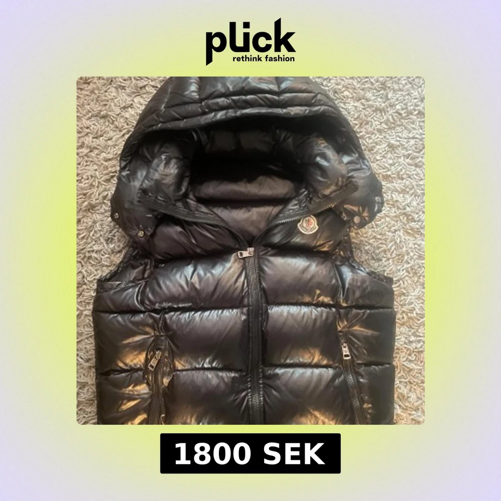 Säljer en svart, glansig dunväst från Moncler med avtagbar huva och två dragkedjefickor framtill. Västen har klassisk Moncler-logga på bröstet och quiltad design. Perfekt för lager-på-lager och riktigt snygg till streetwear-stil.
