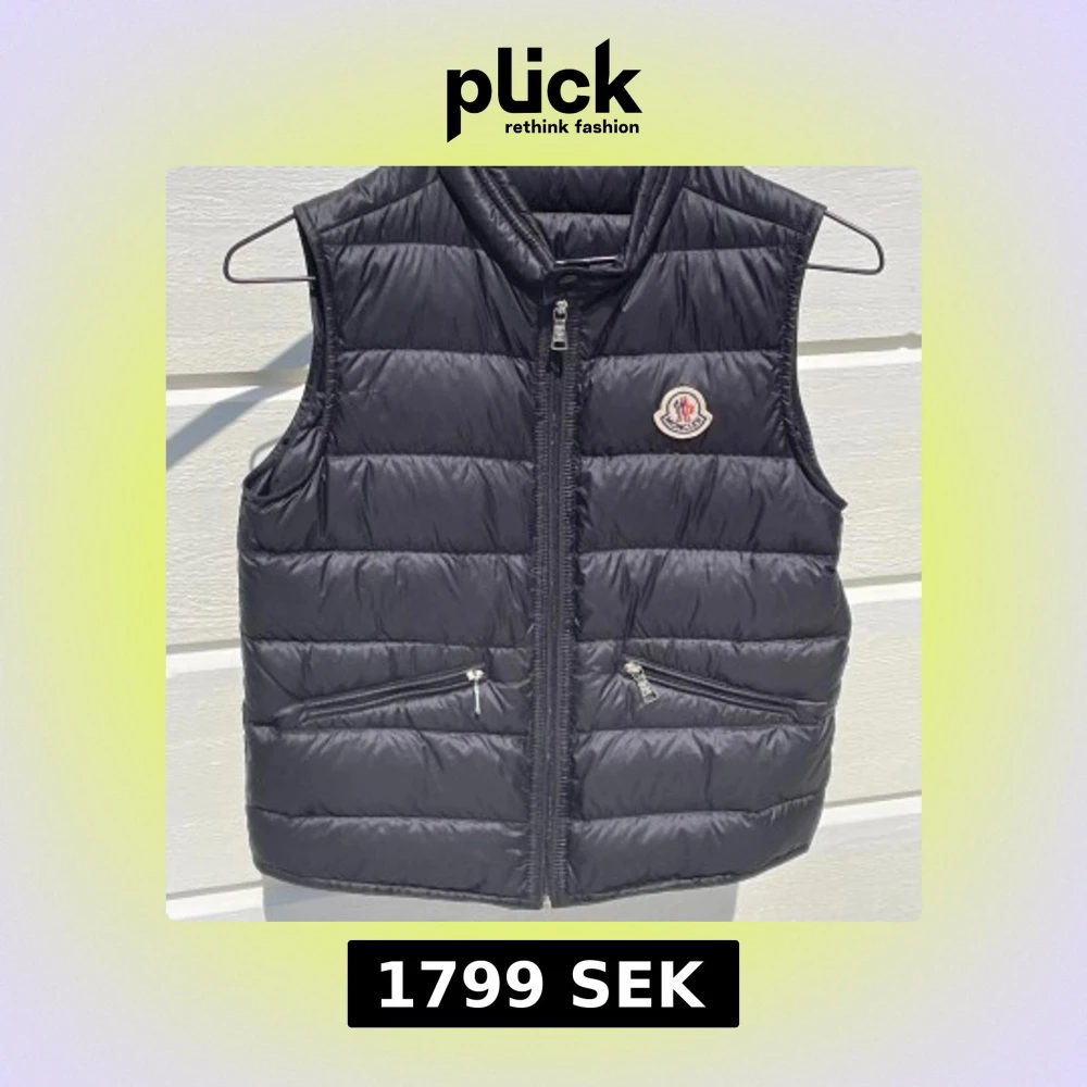 Snygg svart dunväst från Moncler med klassisk logga på bröstet. Västen har quiltad design, två dragkedjefickor framtill och hög krage. Perfekt att slänga över en hoodie eller tröja för extra värme. Stängs med dragkedja framtill.