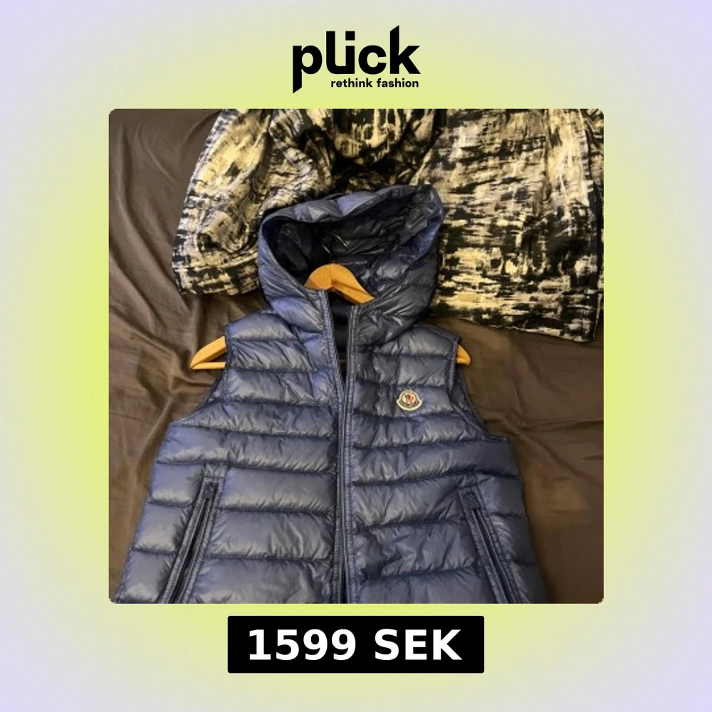 Säljer en blå quiltad dunväst från Moncler, modell Gilet L.Saison Patrick. Västen har en snygg huva, två dragkedjeförsedda fickor och ikonisk Moncler-logga på bröstet. Perfekt för lager-på-lager och streetstyle. Fodret är mjukt och materialet är glansigt.