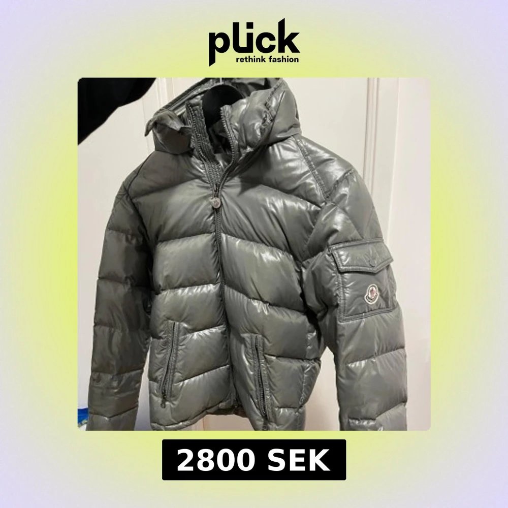 Säljer denna gråa pufferjacka från Moncler med glansig finish och huva. Jackan är i väldigt bra skickt passar både tjejer och killar och Självklart äkta. Kvitto finns. Storlek 164-176. Nypris 12k.