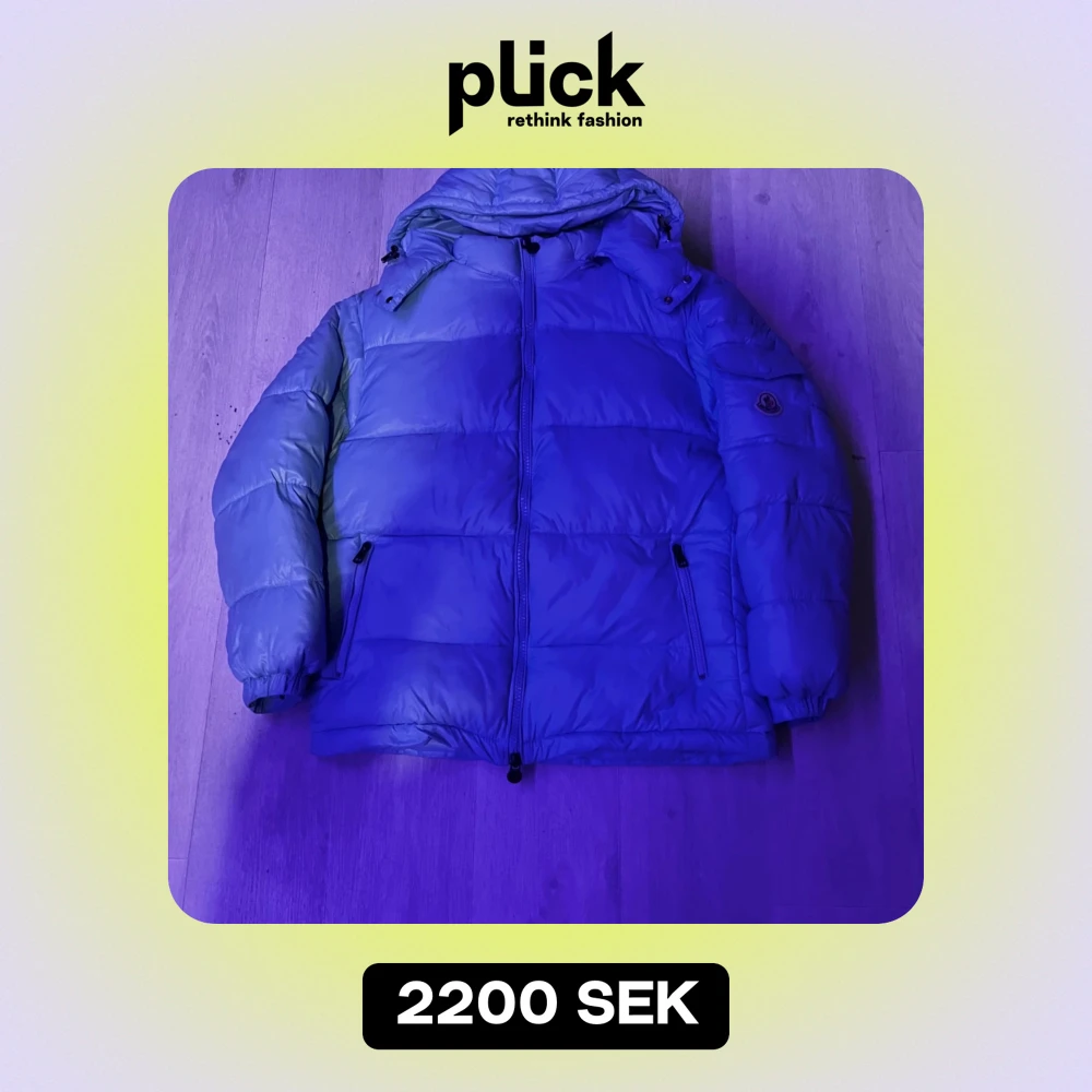 Säljer en snygg blå dunjacka från Moncler. Jackan har en pufferstil med dragkedja och långa ärmar. Perfekt för kalla vinterdagar. Den är i mycket bra skick och har en cool etikett med tvättinstruktioner i seriestil. Passar både till vardags och lite finare tillfällen. Använd ca 10 gånger den var för stor så säljer den har triangeln och allt annat men skriv om mer bilder