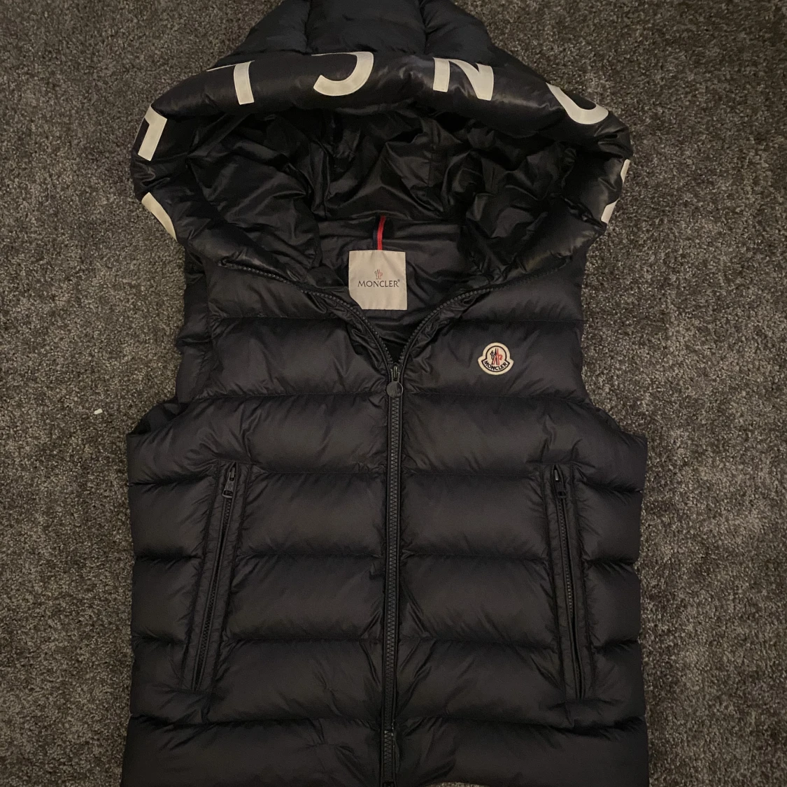 Tjena säljer nu denna moncler västen den är i strolek 3 men sitter som M/L den har flera lagningar som ni kan se på bilden det syns inte vid användning! utöver de är den i mycket bra skick🙌