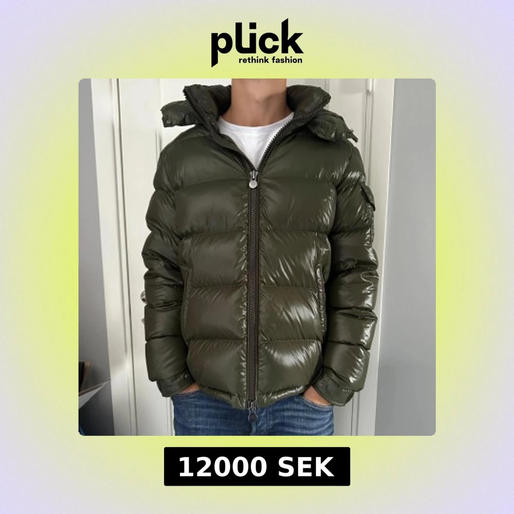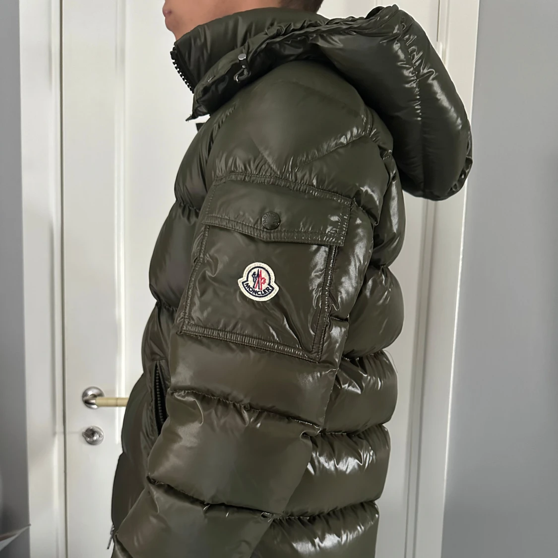Säljer en olivgrön pufferjacka från Moncler med glansig finish och klassisk logga på ärmen. Perfekt för dig som vill ha en jacka för vintern! Jackan är äkta och i nyskick därav priset!