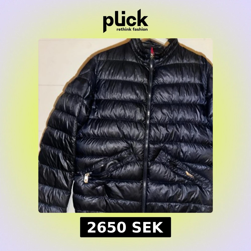 Snygg mörkblå dunjacka från Moncler med klassisk quiltad design och hög krage. Jackan har två snedställda fickor med dragkedja och Moncler-logga på ärmen. Perfekt för kalla dagar och ger en clean, sportig look. En flaw på ryggen