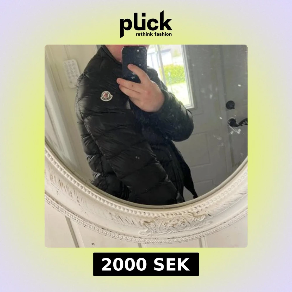 Säljer en svart Moncler dunjacka med klassisk logga på ärmen. Jackan är quiltad och har dragkedja framtill. Tillverkad i glansig polyester och fylld med dun, perfekt för kyliga dagar. Snygg och tidlös modell som passar till det mesta. Storlek 3 m/l