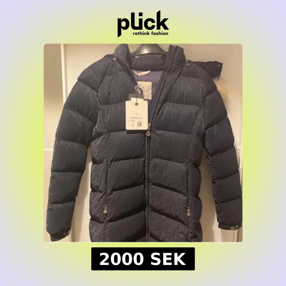 Snygg svart pufferjacka från Moncler med pälsdetalj på huvan. Jackan har en dragkedja framtill och långa ärmar. Perfekt för kalla vinterdagar.