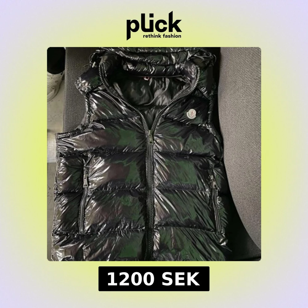 Svart glansig dunväst från Moncler med hög krage och två dragkedjefickor. Västen har quiltad design, tydlig Moncler-logga på bröstet och dragkedja framtill. Perfekt för lager-på-lager och ger en clean, sportig look. Storlek M