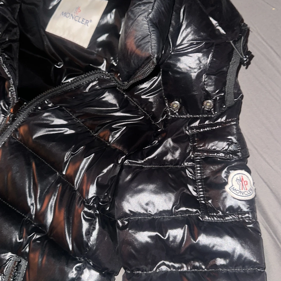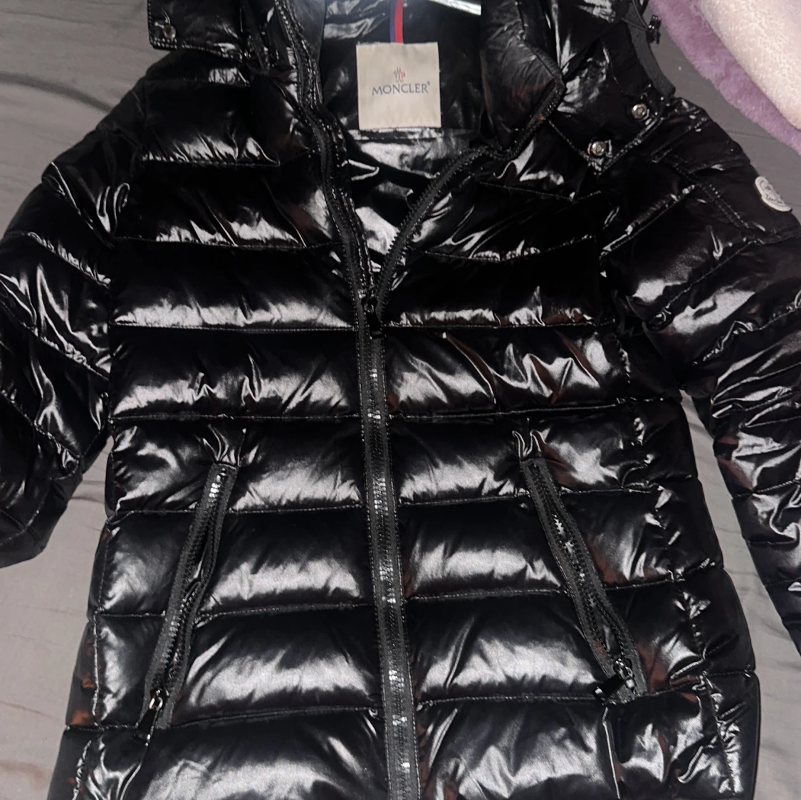 Säljer en glansig svart dunjacka från Moncler med huva och dragkedja framtill. Jackan har två fickor med dragkedja och Moncler-logga på ärmen. Perfekt för kyliga dagar och ger en snygg, sportig look. Äkta Moncler köpt 2024, användning 3 gånger. Storlek 01=S. köpte den för 14000kr och säljer den för 7500kr vid snabb köp kan priset diskuters. Bara seriösa kunder.