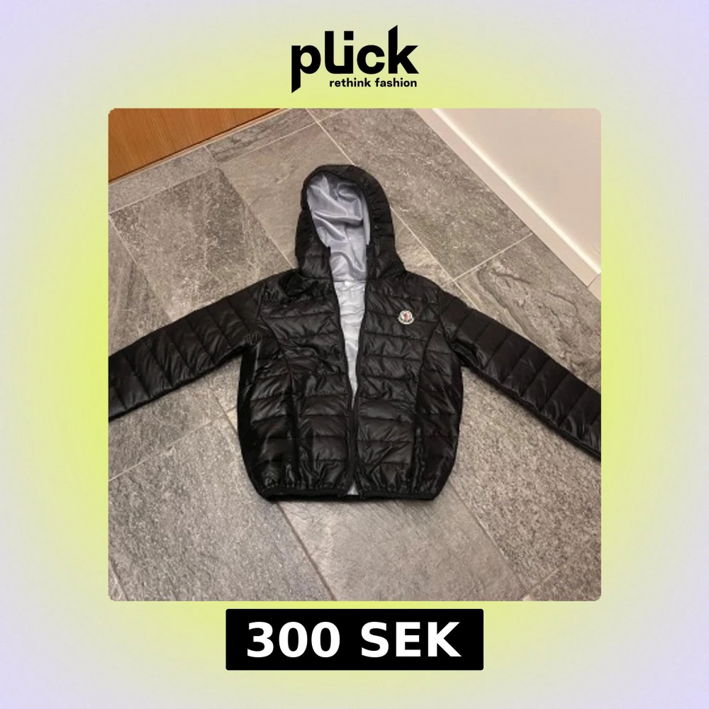 Snygg svart dunjacka Moncler (troligen inte äkta) med huva och dragkedja. Jackan har en quiltad design och är perfekt för vår väder. Den har en stilren look och är lätt att matcha med olika outfits. Storlek xs/s. Använd fåtal gånger. Som ny