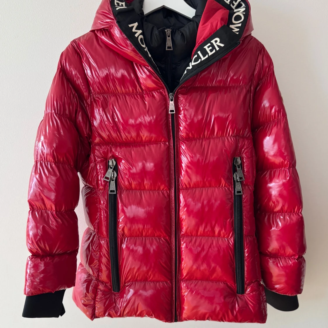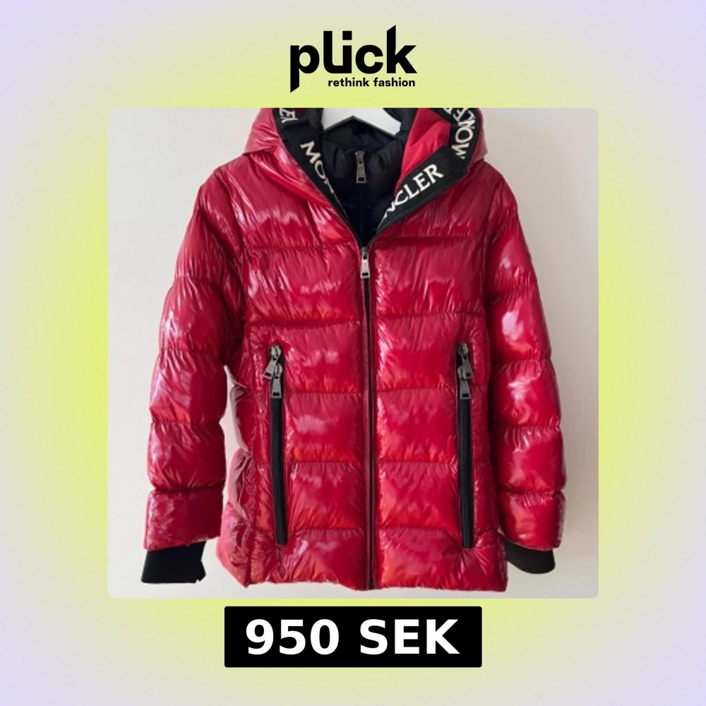 Röd dunjacka med huva XS/S