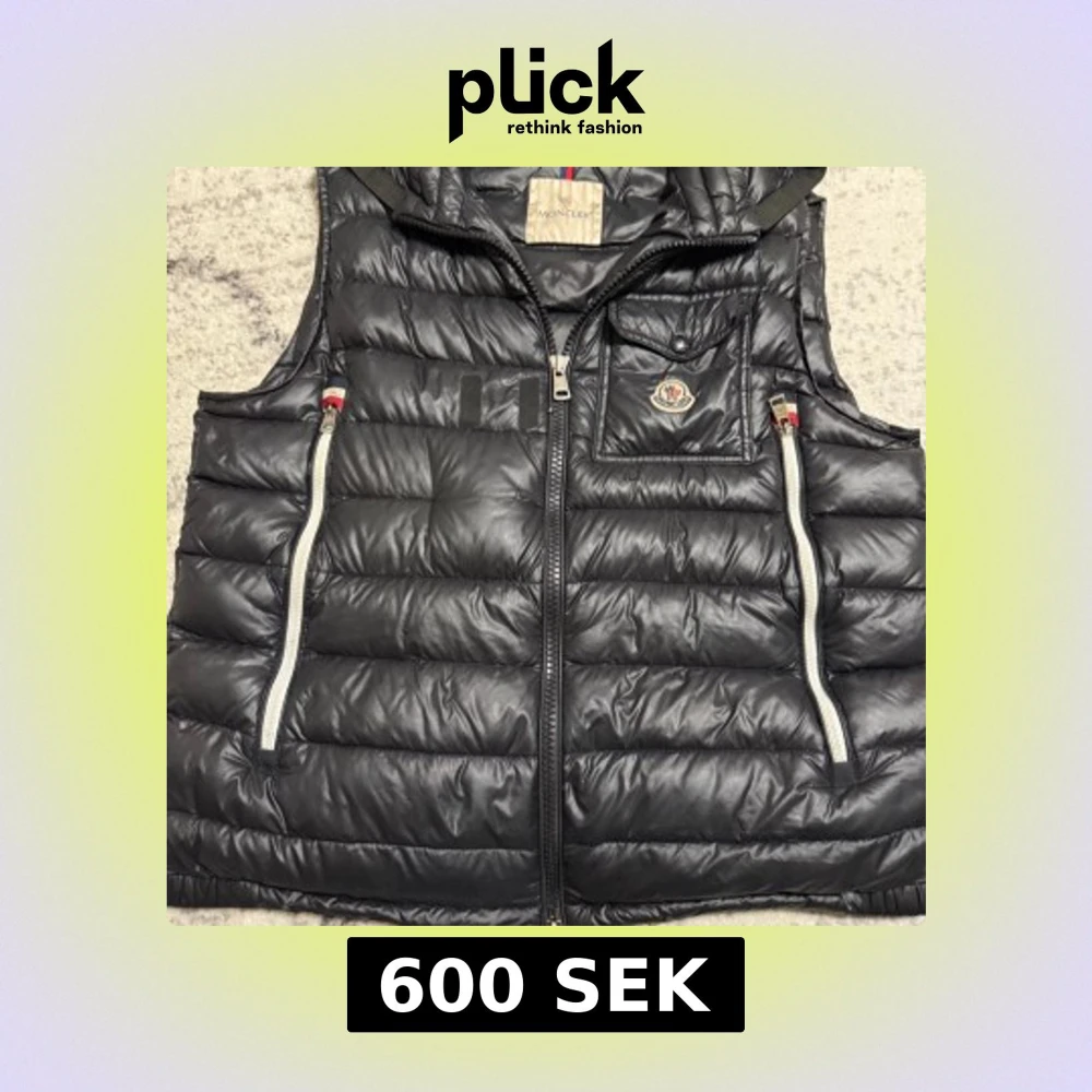 Snygg svart dunväst från Moncler med dragkedja och två fickor framtill. Västen har en quiltad design och en liten bröstficka med knapp. Perfekt för kyliga dagar.