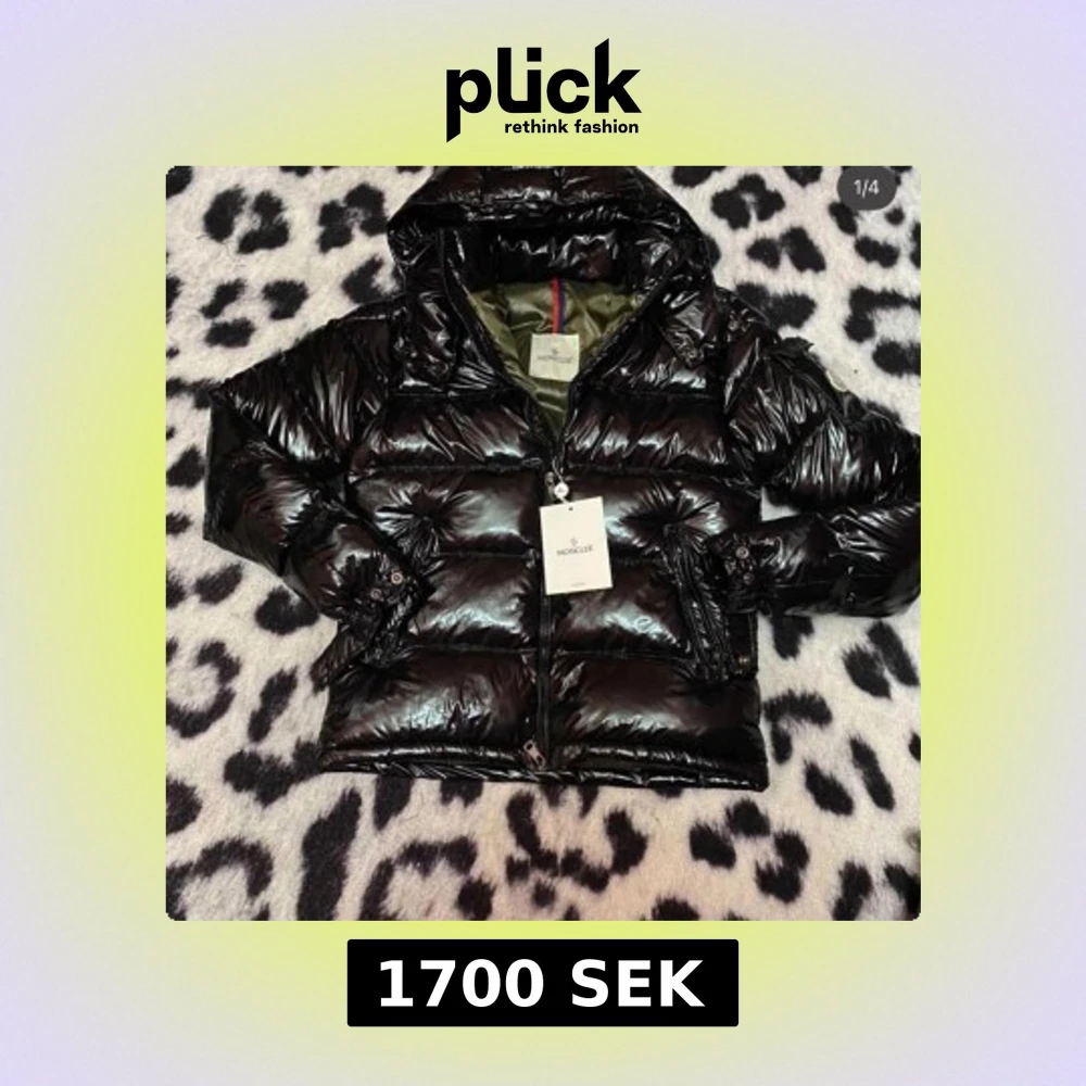 Säljer en glansig svart pufferjacka från Moncler med huva och dragkedja framtill. Jackan har quiltad design och långa ärmar med snygga detaljer vid mudden. Perfekt för kalla dagar och riktigt snygg streetstil.