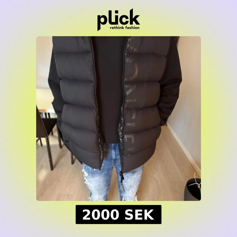 Svart dunväst från Moncler med diskret logga på bröstet och bak, samt en snygg dragkedja med Moncler-tag. Västen har breda, quiltade sektioner och en stilren look som funkar till jeans och hoodie. Materialet är polyester och dun, perfekt för kyliga dagar.