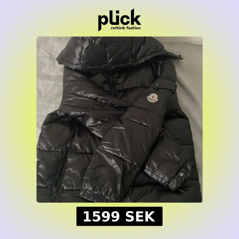 Säljer en svart Moncler dunjacka med glansig finish och huva. Jackan har dragkedja framtill, två fickor med dragkedja och klassisk Moncler-logga på ärmen. Perfekt för kalla dagar och riktigt snygg streetstil.