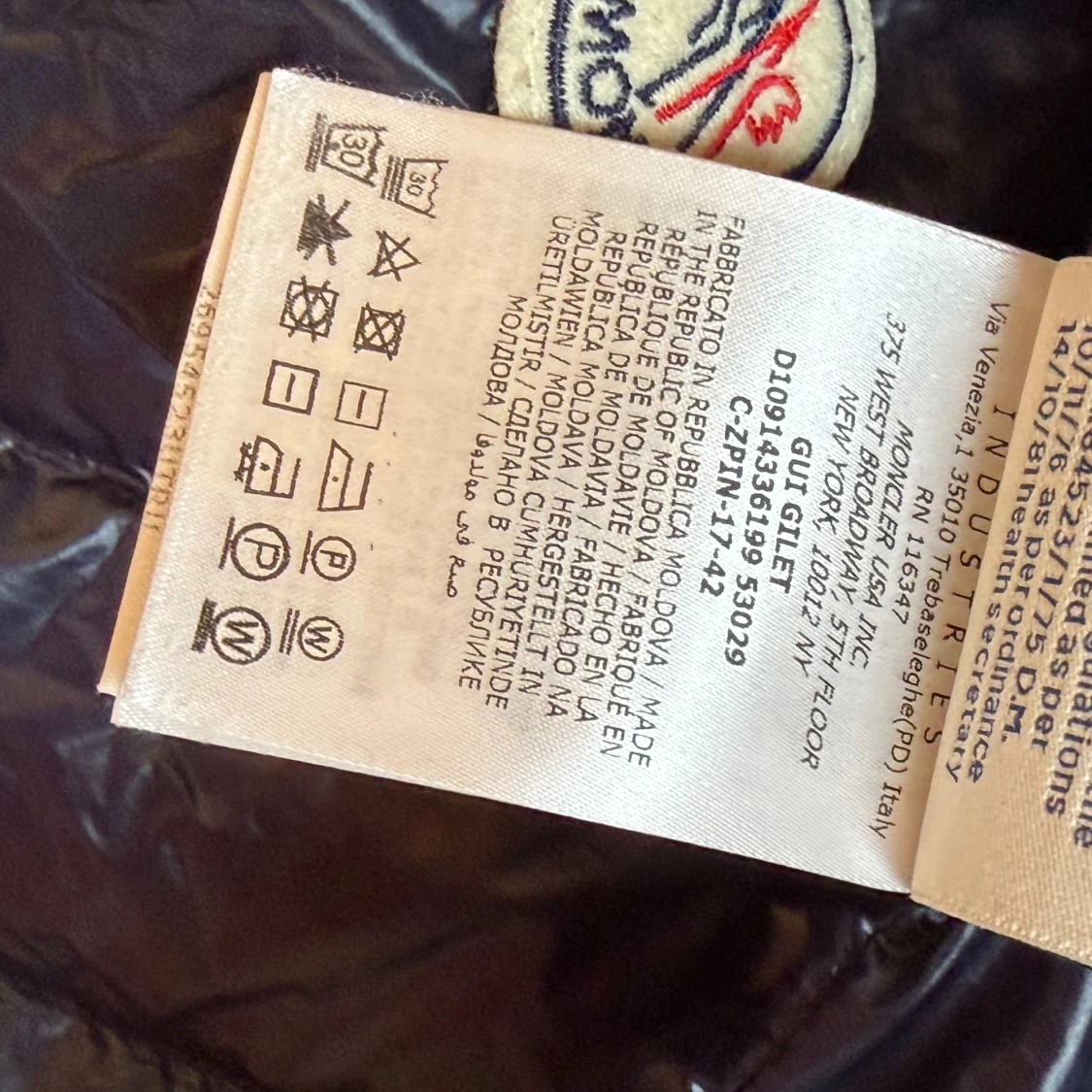 Moncler Gui väst. Storlek 5 fits L. Skick 9/10 med dustbag. Pris 3190kr finns att köpa på våran hemsida, Fashionels.com