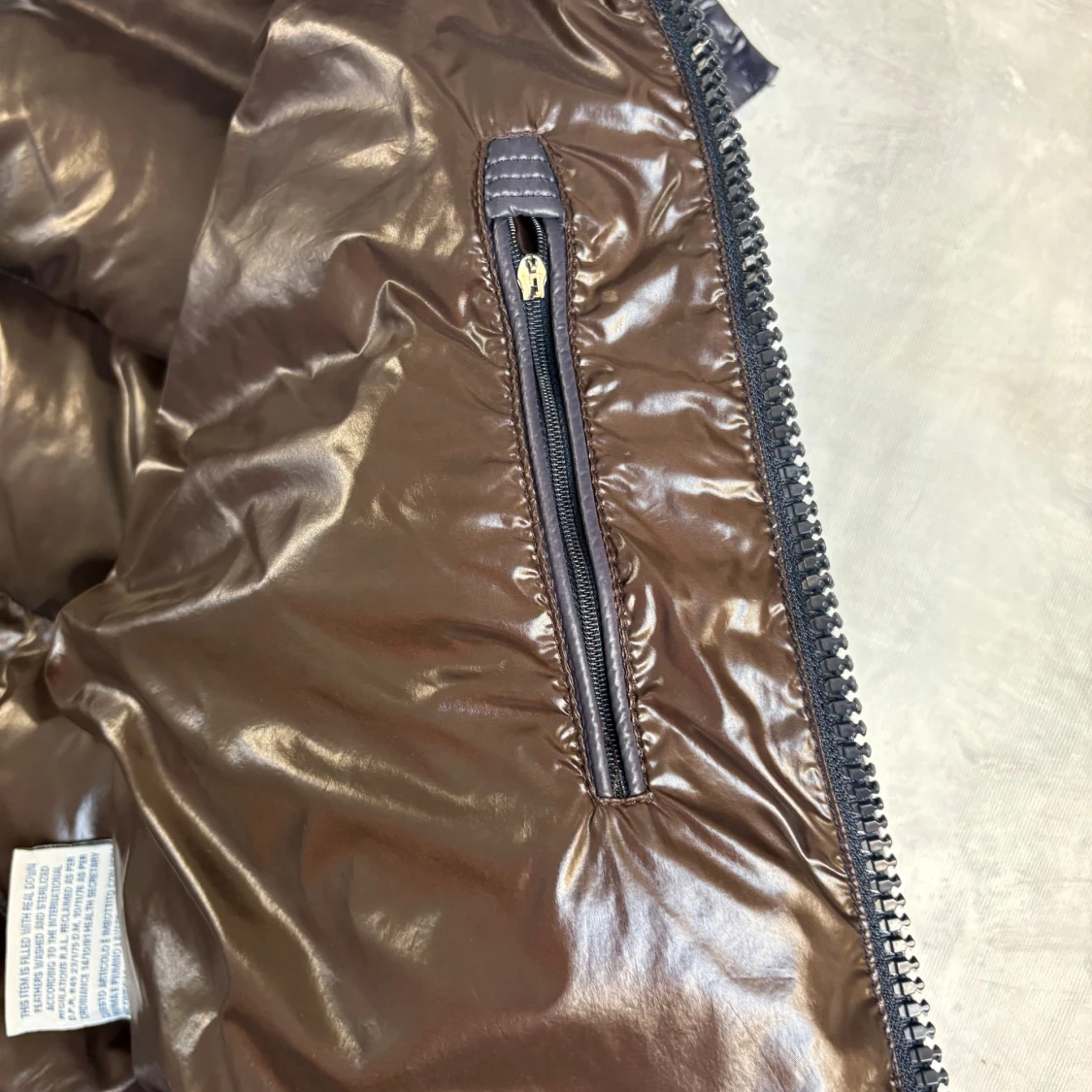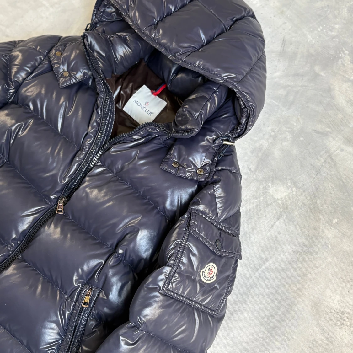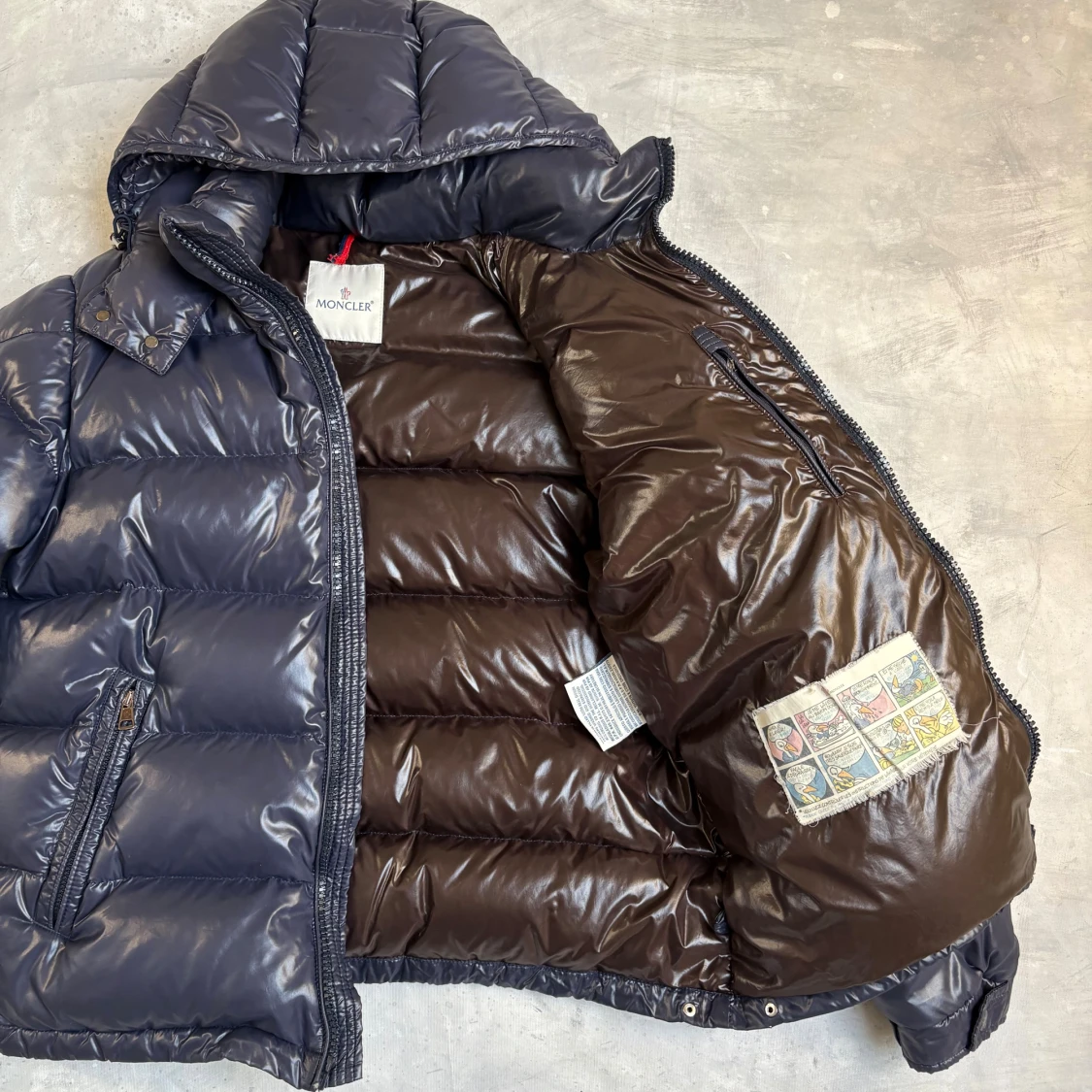Moncler maya navy i superfint skick. Två små defekter, se bilder annars helt perfekt! Storlek 5 sitter som en L-XL. DM vid intresse!