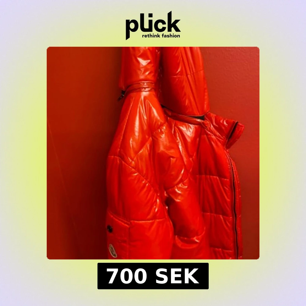 Säljer en snygg röd dunjacka från Moncler. Jackan har en glansig finish och är utrustad med praktiska fickor med knappar. Perfekt för kyliga dagar när du vill hålla stilen. 🔥 jag kan inte se storleken så jag kommer lägga en random storlek