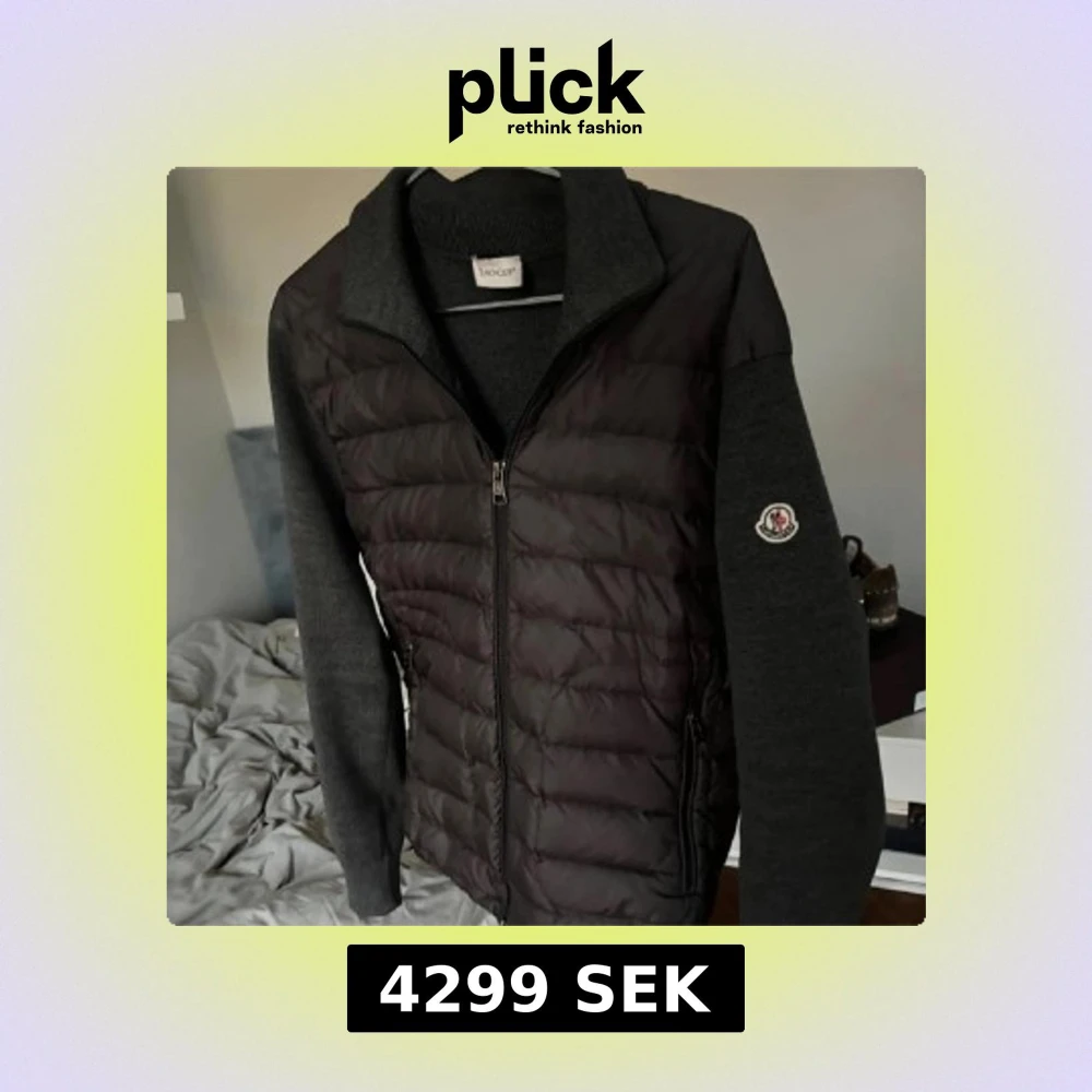 Snygg grå cardigan jacka från Moncler med quiltad framsida och stickade ärmar och rygg. Jackan har dragkedja framtill, hög krage och Moncler-logga på ärmen. Perfekt för dig som vill ha en stilren och exklusiv look. Äkthets verifierad av Vestiaire Collective och denna färg säljs inte mer. Lite skavanker på slutet av ärmarna.