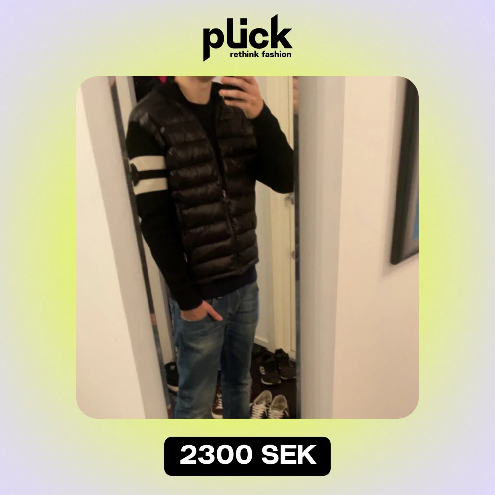 Säljer en jävligt fet svart cardigan från Moncler. Den har en cool design. Ärmarna är långärmade med en vit randdetalj och Moncler-logga på ena ärmen. Perfekt för höst och vinter! Jag är 182 och den passar perfekt på mig. Priset är inte hugget i sten🙌