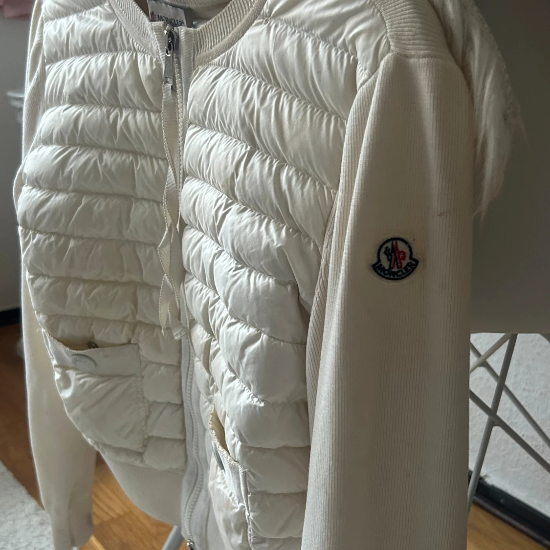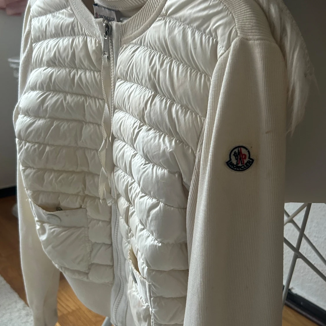 Vit Moncler Cardigan i användt skick men ser fortfarande väldigt fin ut. Ett litet hål i armhålan som går att fixa, skriv privat för fler bilder inklusive på hålet. Köparen står för frakt