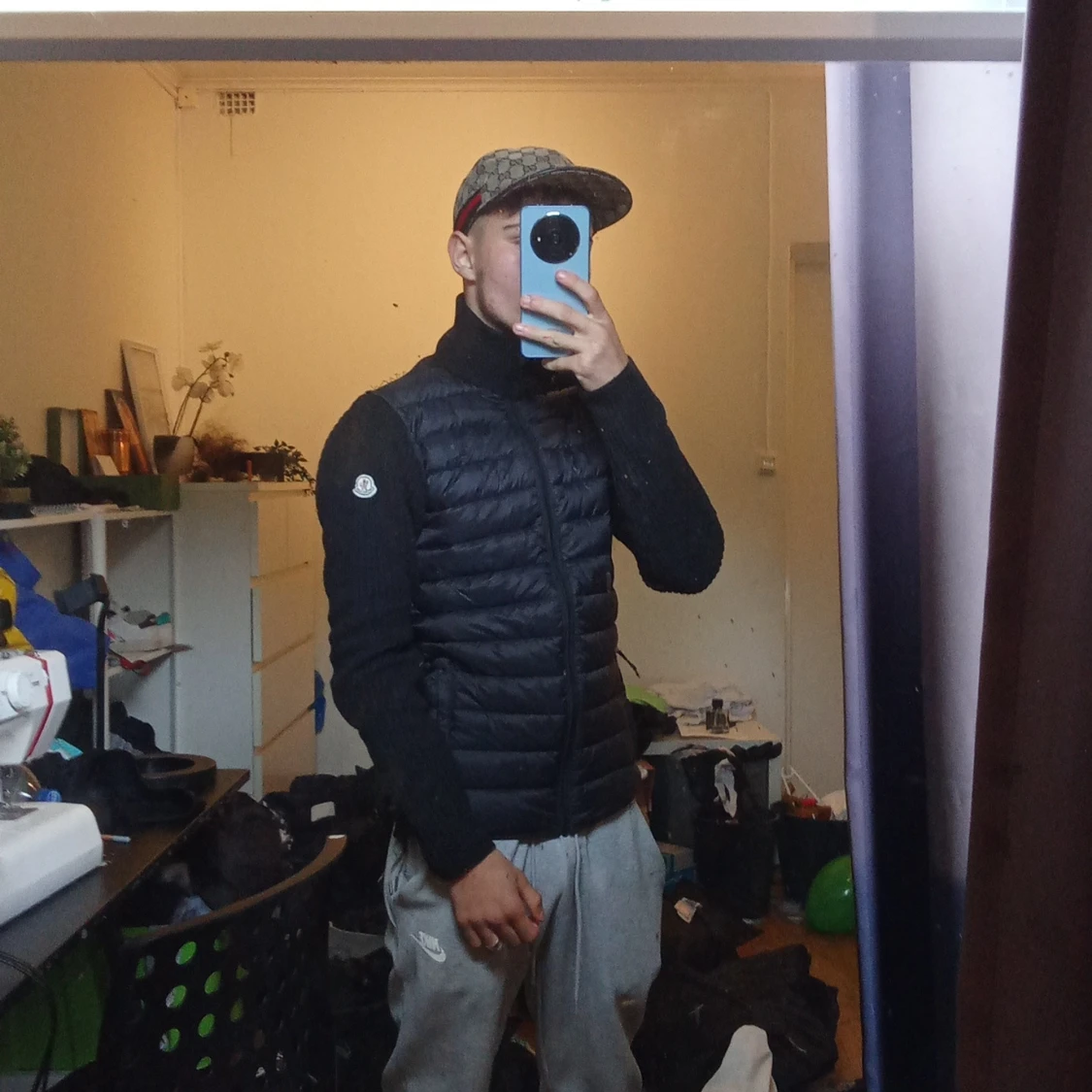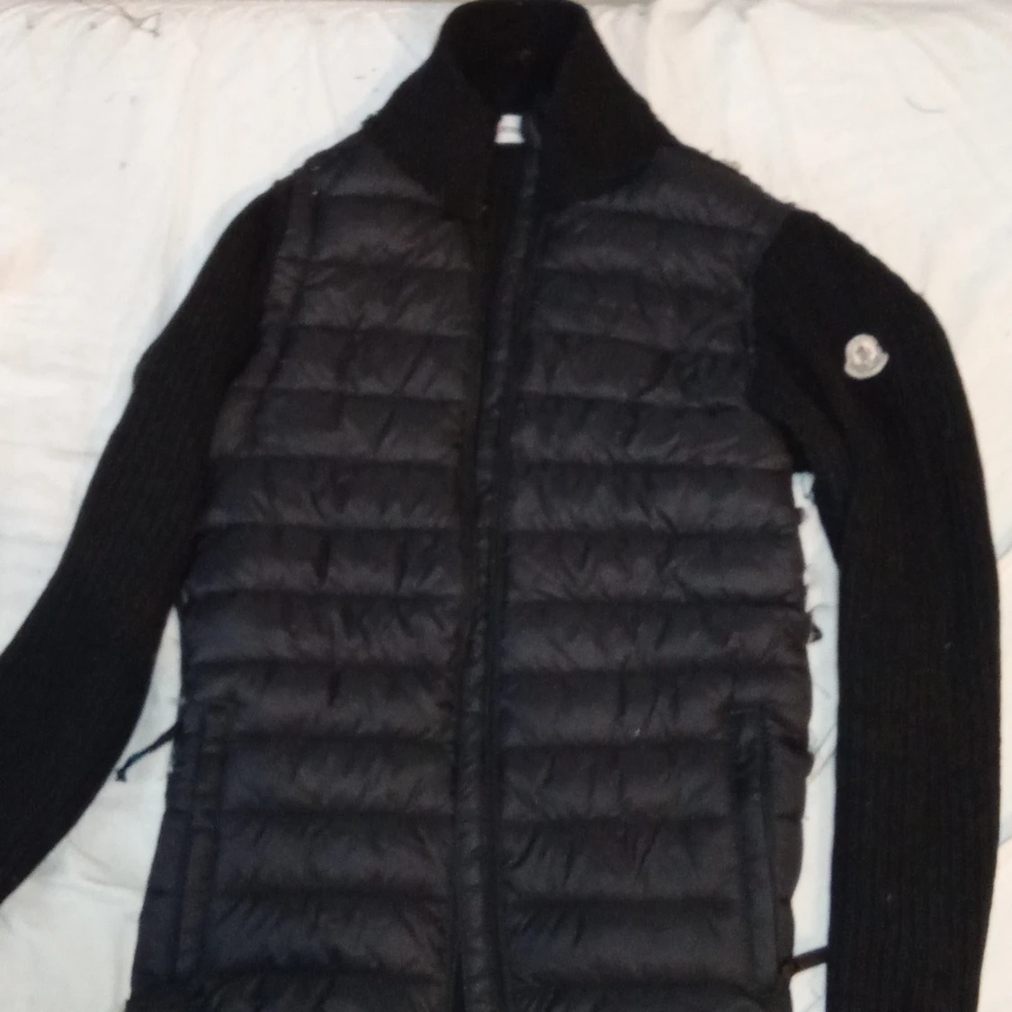 Hör har vi en Moncler cardigan i storlek Xs, den är för killar passar 158/170 den är från mig gjord den är skön, okej skick och håller din drip!
