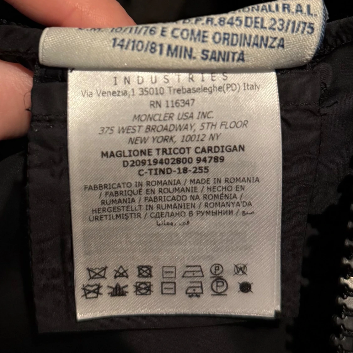 Moncler cardigan i storlek M. Produkten är i väldigt bra skick, 9/10 utan några defekter. Skriv för mer info. Äkthet garanteras till 100%.