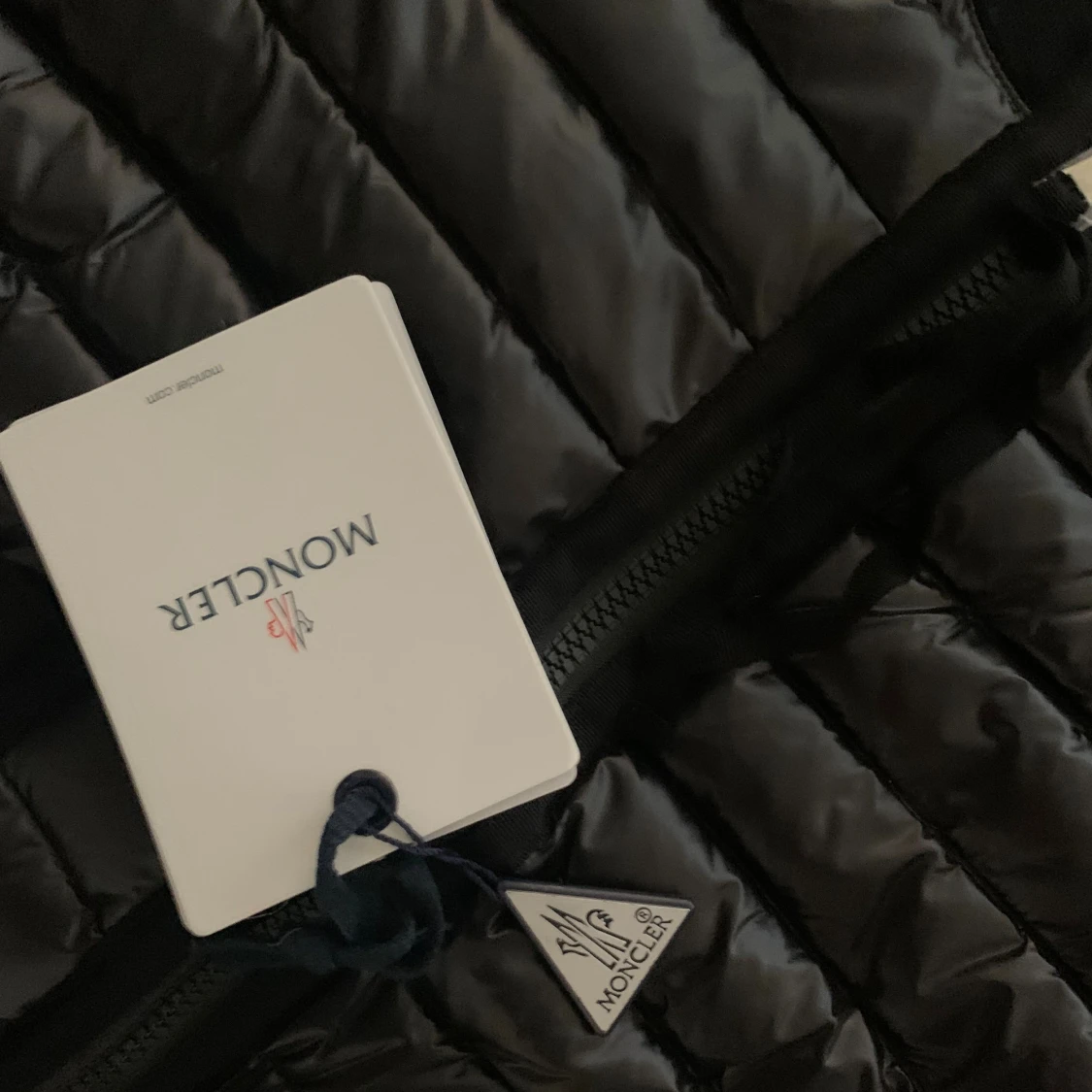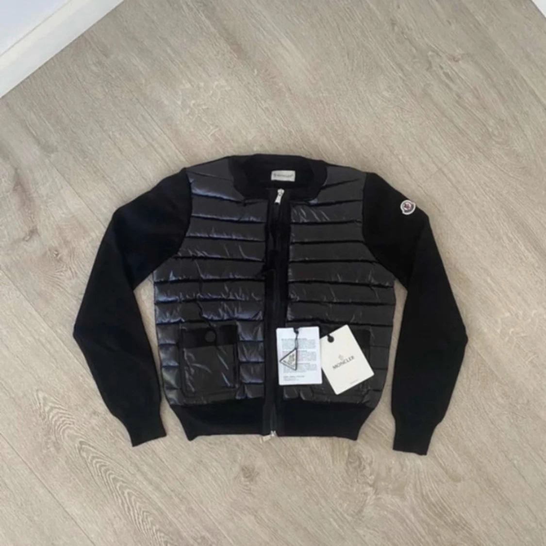 Moncler tricot cardigan dam med quiltad framsida och snygga horisontella sömmar. Västen har en praktisk ficka framtill, dragkedja och Moncler-logga på ärmen. Materialet är polyester och dun, vilket gör den både lätt och varm. Perfekt för att addera en exklusiv touch till din outfit. Priset kan diskuteras! JAG LÄMNAR SAMMA DAG!!