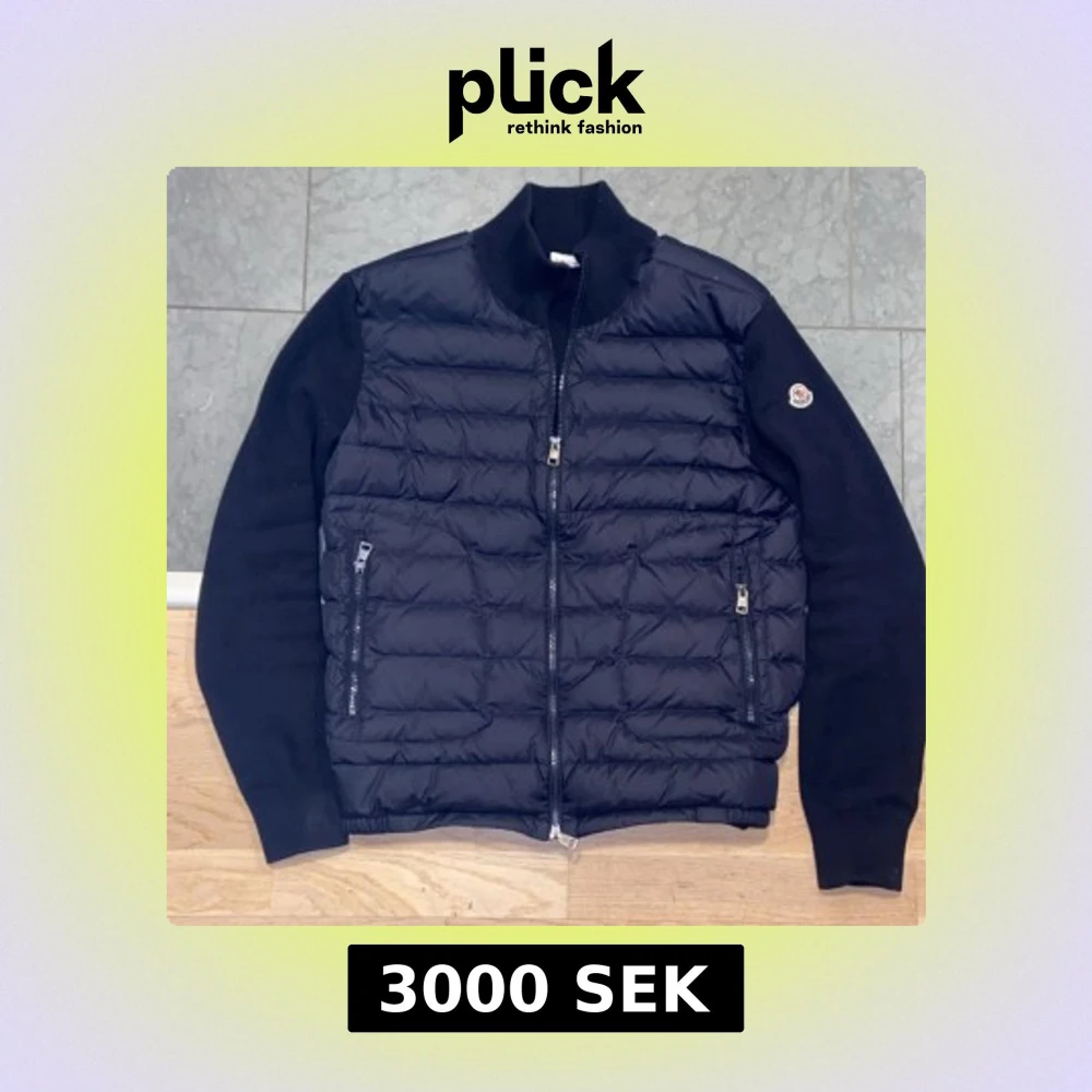 Moncler cardigan med quiltad front och stickade ärmar. Jackan har två dragkedjeförsedda fickor och en hög krage. Moncler-logga på vänster ärm. Perfekt för dig som vill ha en stilren och exklusiv look.