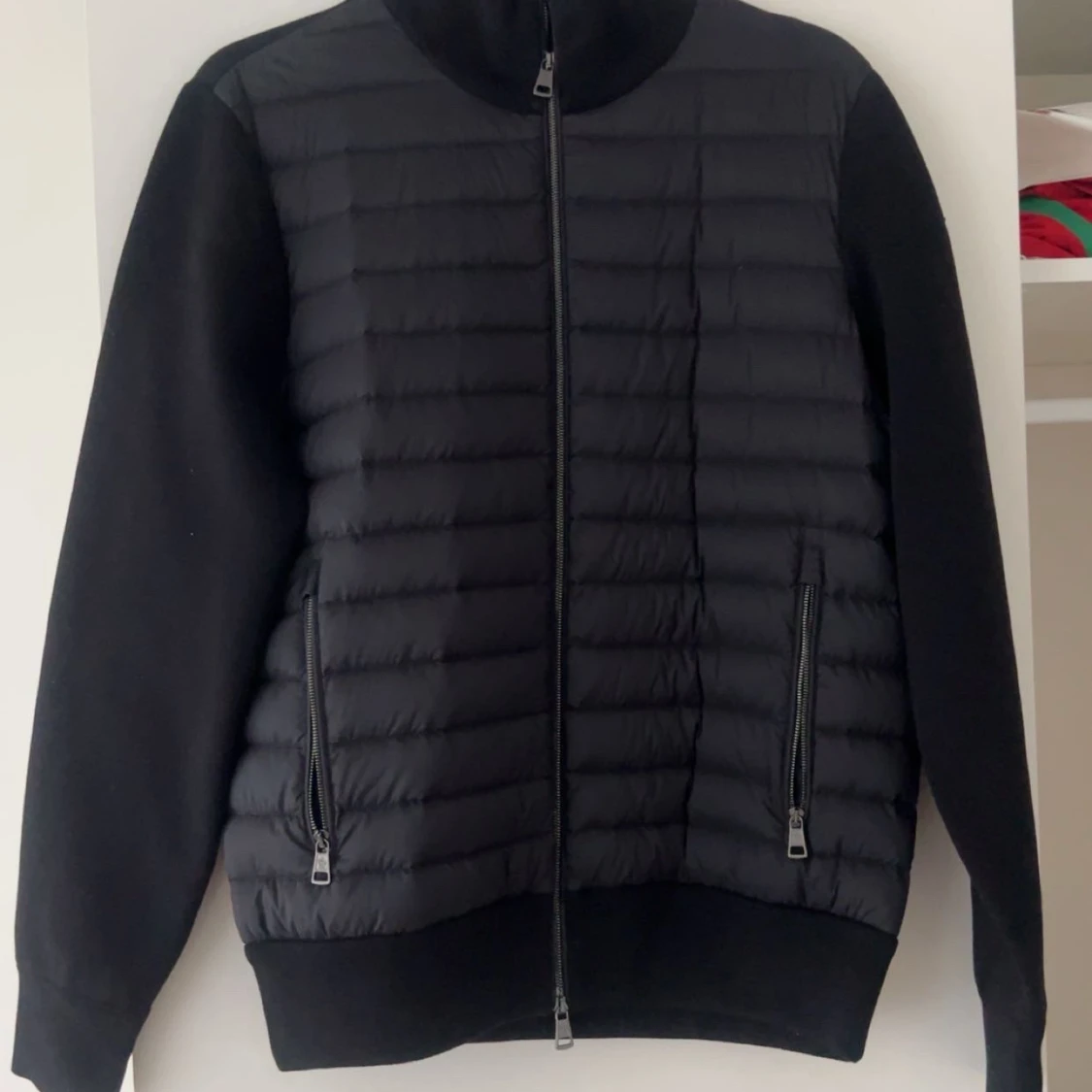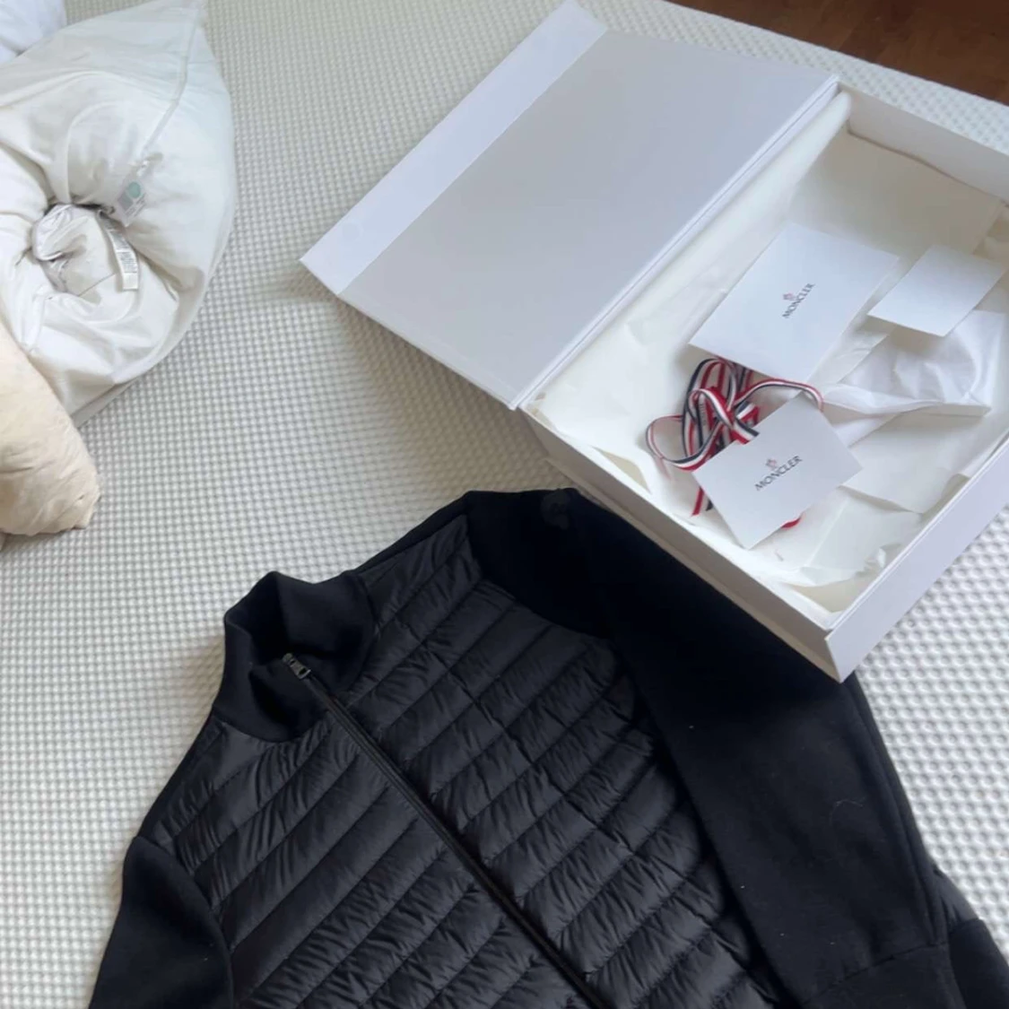 Snygg svart pufferjacka från Moncler med quiltad framsida och släta ärmar. Jackan har två dragkedjeförsedda fickor, hög krage och Moncler-logga på ärmen. 100% ÄKTA CERTIFIKAT OCH ALLT FINNS. Priset kan diskuteras.