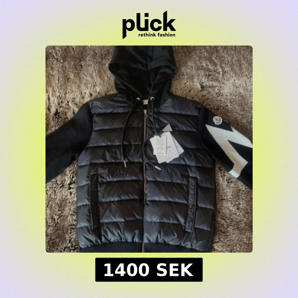 Säljer en svart pufferjacka från Moncler med huva nfc funkar o allt som de ska helt ny typ