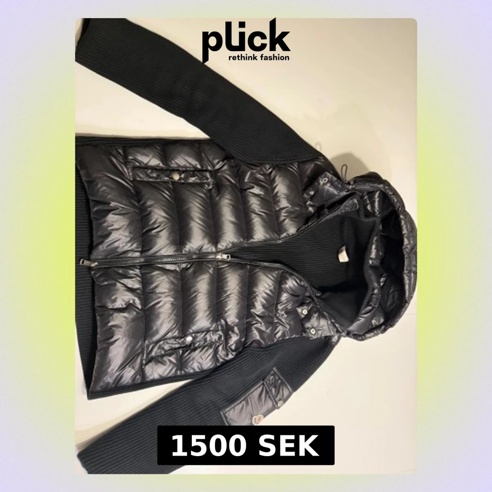 En svart moncler cardigan i storlek i storlek m men den är ganska liten i storleken