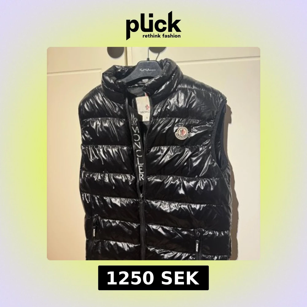 Säljer en svart dunväst från Moncler i storlek S och är i helt okej skick och är ganska smutsig på bild men annars så är den i bra skick.