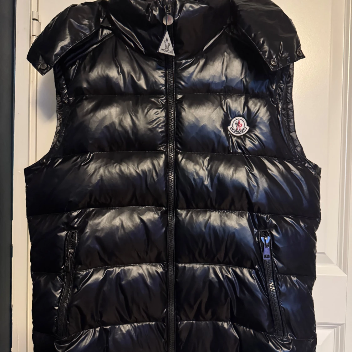 Äkta Moncler dunväst i svart, storlek 3 – passar M eller liten S. Klassisk modell med hög krage, två dragkedjefickor och ikonisk Moncler-logga på bröstet. Lätt, varm och perfekt för lager på lager under höst och vinter. Helt ny, oanvänd 📍 Finns i Stockholm kan skickas mot frakt 💸 Pris: 2000 (kan gå ner)