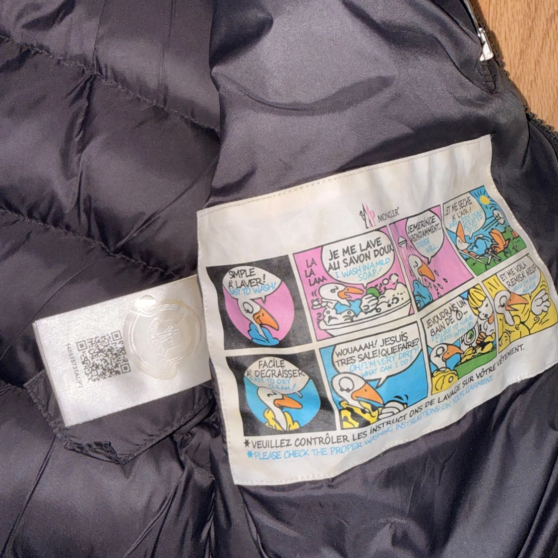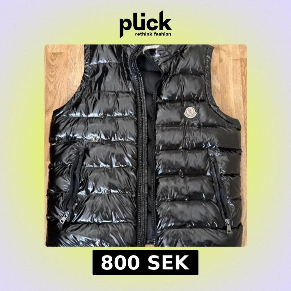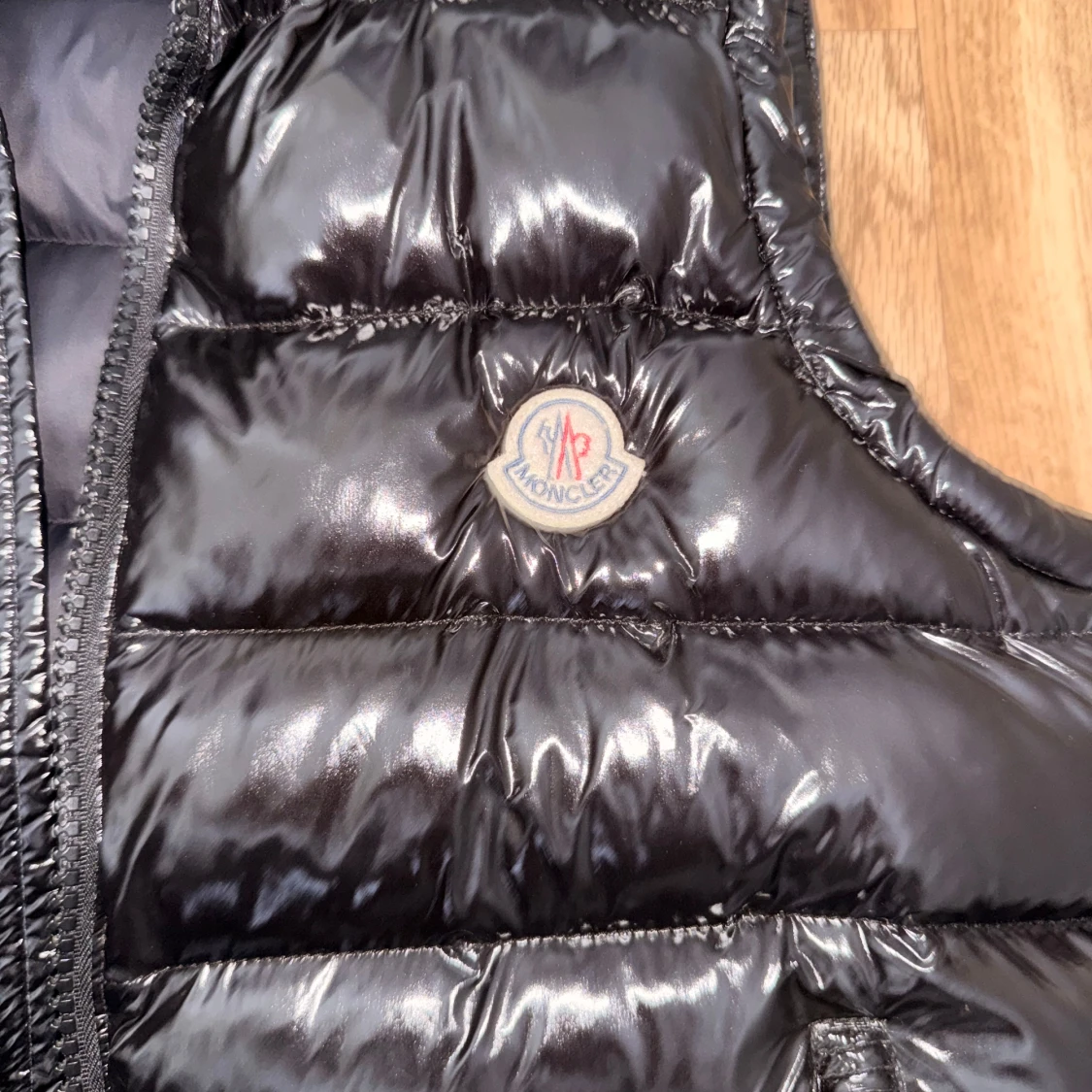 Snygg svart dunväst från Moncler med glansig finish och klassisk logga på bröstet. Västen har två dragkedjefickor framtill och quiltad design. Perfekt för lager-på-lager och ger en clean streetstyle-vibe. NFC Scan funkar på märket