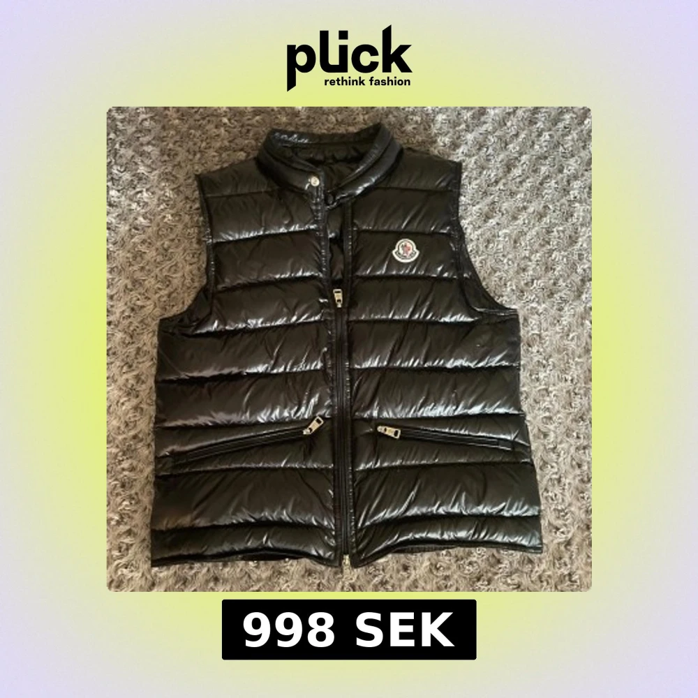 Snygg svart dunväst från Moncler med glansig finish och klassisk logga på bröstet. Västen har två dragkedjefickor framtill, ståkrage och quiltad design. Perfekt för lager-på-lager och ger en clean streetstyle-vibe. Endast seriösa köpare!
