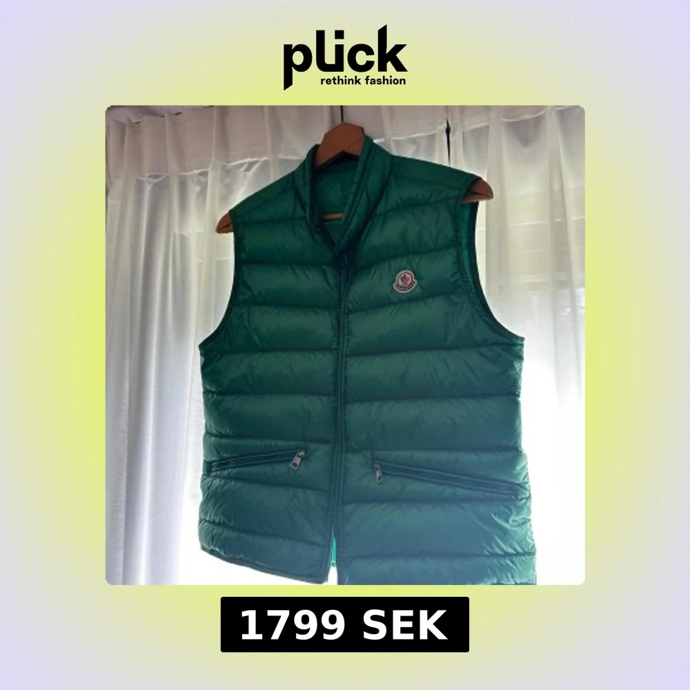 Tja. Säljer av min gröna moncler gui då ja inte använder den. Den är sjukt snygg och perfekt nu på sommaren. Inget slitage alls på den! :) den är i storlek 2 som motsvarar M tror ja!