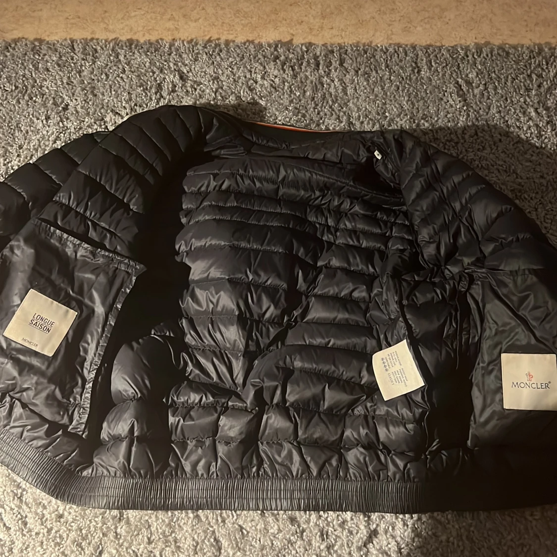 Svart pufferjacka från Moncler som passar till vintern eller hösten, kanske till och med våren. Bra skick, 2 hål som man kan se på bild 4 & 5. Fast inget man märker vid användning. Annars är jackan i mycket bra skick. Äkta såklart. Mitt pris 500kr. Kontakta mig om du har frågor👍✅
