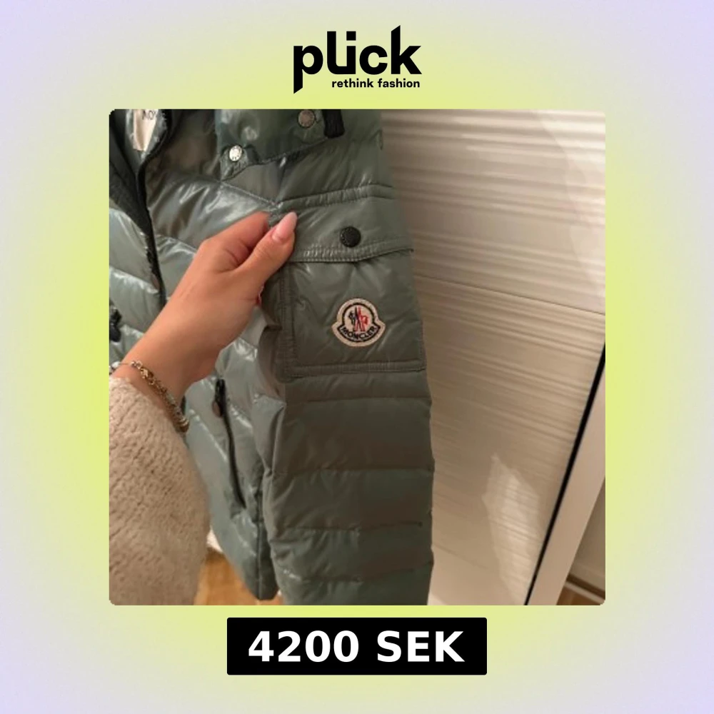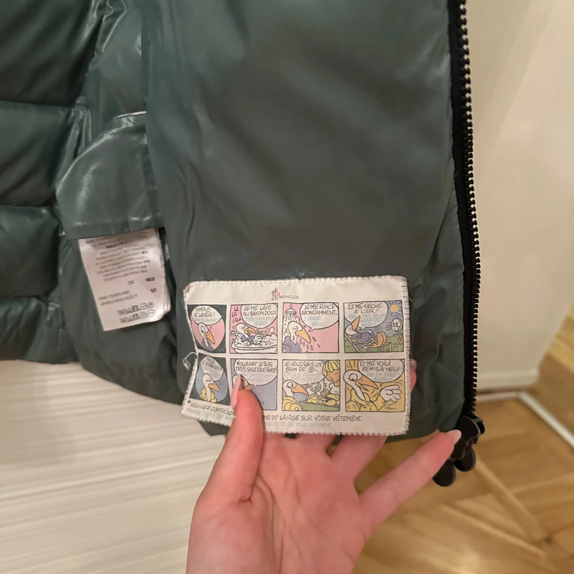 Moncler jacka i storleken 12y, (passar mig som är Xxs/xs i storleken. Super fin grön unik.. 💕jackan är självklart äkta och vid mer information om äkthetsbevis hör av dig ! Jackan är i toppen skick med en avtagbar luva. Sista bilden så ser man att lappen lossnat på sömmen längst ner men sitter fortfarande kvar.Djur och rökfritt hem💕Jackan är köpt på vesitaire collective 🫶🏼är i ett fint skick, har användes under en vinter! Jackan kommer att tvättas& puffas till innan frakt.Säljes i befintlig skick