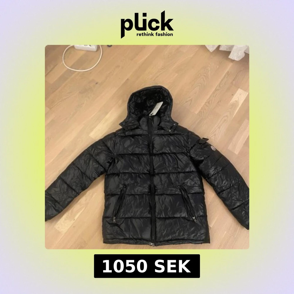 Svart Moncler dunjacka med huva L