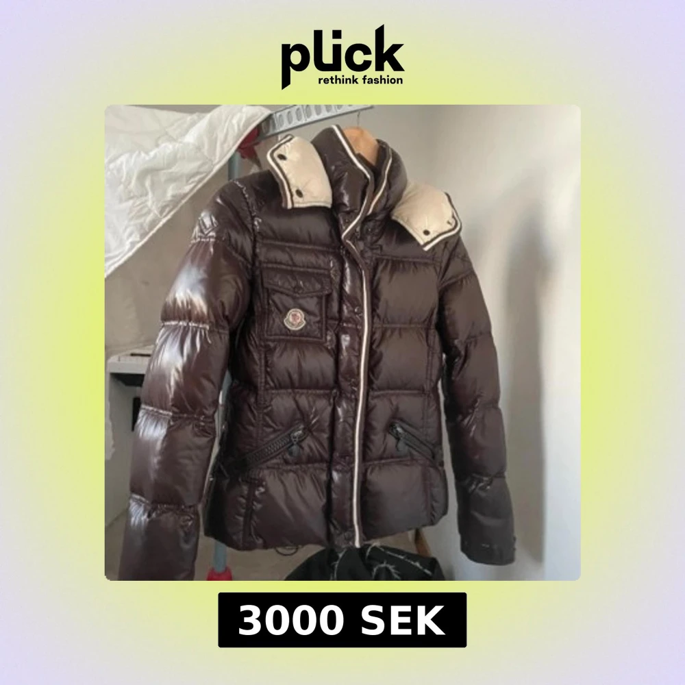 Säljer en mörkbrun jacka från Moncler med vita detaljer på kragen och insidan. Jackan har dragkedja, fickor med dragkedja och knapp, samt Moncler-logga på bröstet. Perfekt för kalla dagar och riktigt snygg till jeans. Riktigt bra skick.