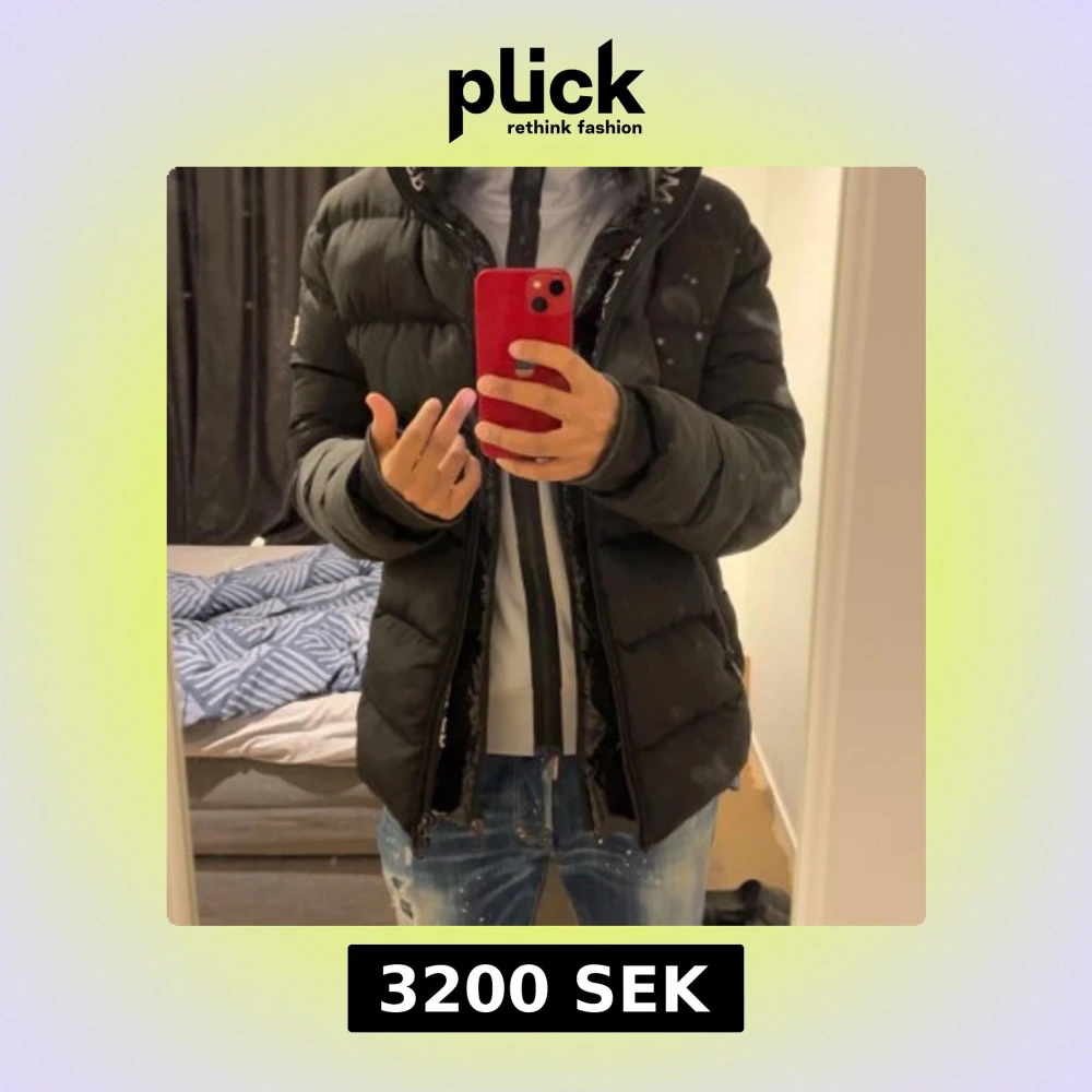 Säljer en svart pufferjacka från Moncler med huva och dragkedja. Jackan har Moncler-logga på ärmen och coolt serietryck på insidan. Fylld med dun och har två fickor med dragkedja framtill. Perfekt för kalla dagar och riktigt snygg streetstil.