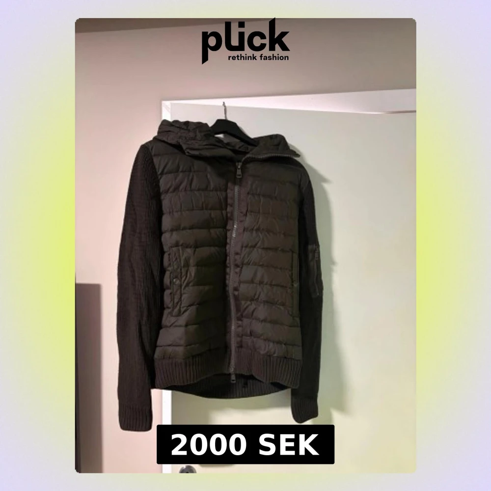 Äkta Moncler i fina skick sparsamt använd. Köpt förra året men var lite för liten så knappt använd. Inga hål och dragkedjor funkar som dom ska. L men passar mer medium.