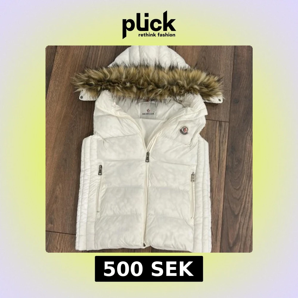 Säljer en snygg vit dunväst från Moncler med quiltad design och hög krage. Västen har två fickor med dragkedja och Moncler-logga på bröstet. Materialet är polyester och dun, perfekt för kyliga dagar. Stängs med dragkedja framtill.