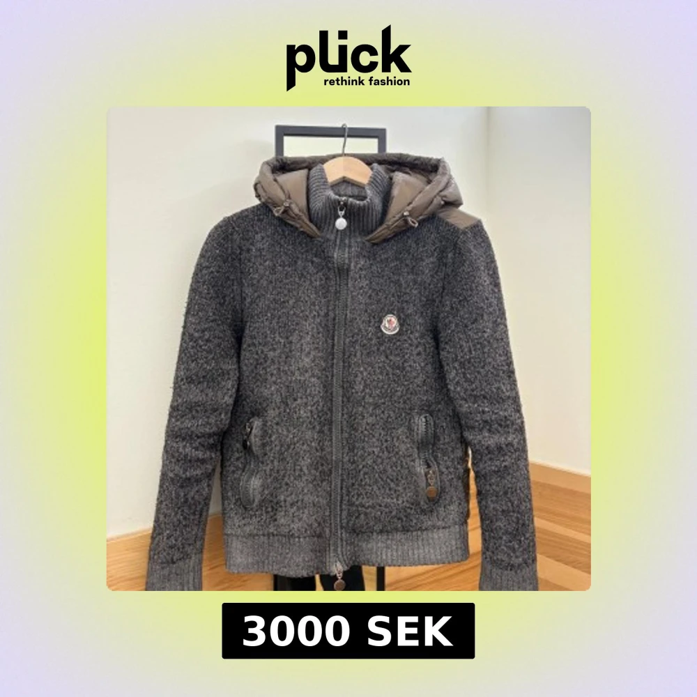 Snygg grå stickad jacka från Moncler med dunfylld huva och rygg. Jackan är extremt sällsynt och sälj knappt. Den är självklart äkta, den är i storlek L men har haft den i torktumlare för att minska den lite men blev för mkt så den sitter mer som XS. Tveka inte på att höra av er. Byta mot annan cardigan elr moncler väst är intressant men ska vara äkta.