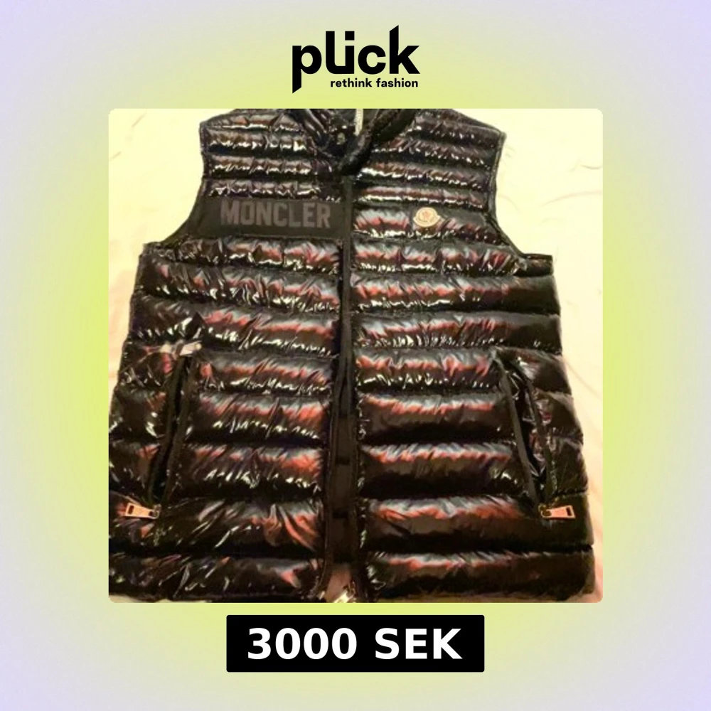 Snygg svart dunväst från Moncler med glansig finish och dragkedja framtill. Västen har två fickor med dragkedjor och Moncler-logga på bröstet. Perfekt för kyligare dagar.