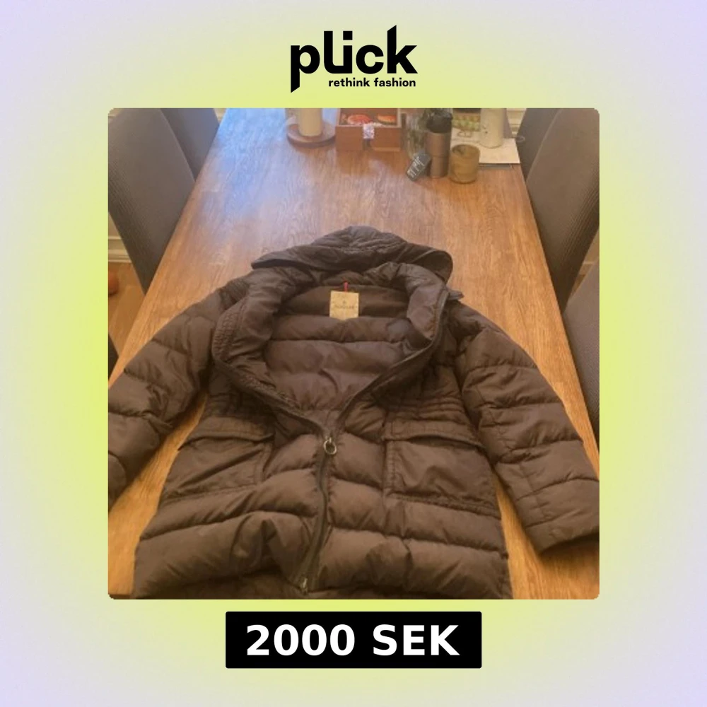 Säljer en svart pufferjacka från Moncler med huva och klassisk logga på ärmen. Jackan har dragkedja framtill, två stora fickor och quiltad design. Perfekt för kalla dagar och har en snygg, tidlös look som funkar till allt.