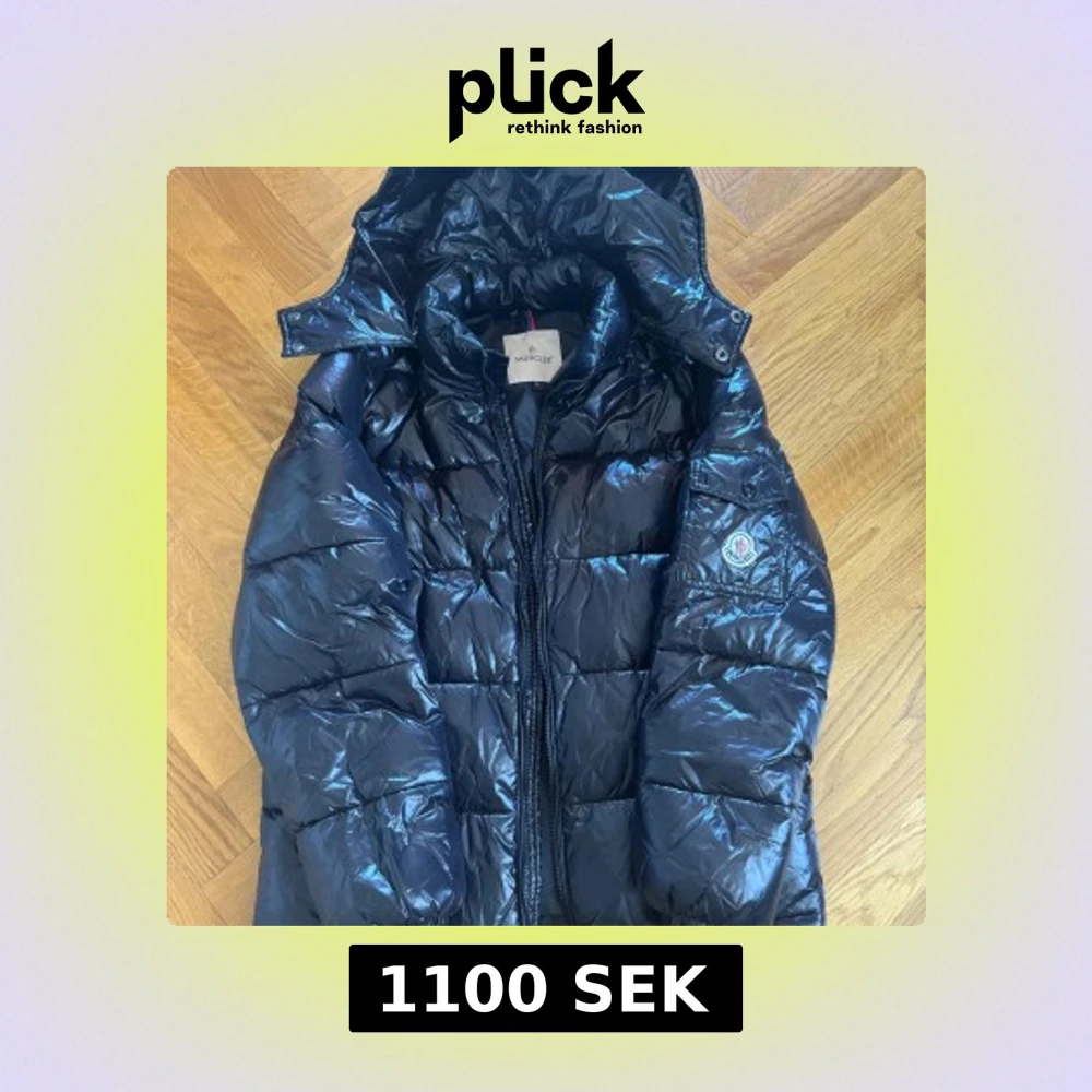 Säljer en snygg svart pufferjacka från Moncler med glansig yta och huva. Jackan har en dragkedja framtill och är perfekt för kyligare väder. Storlek L/M passar bra på båda. Hör gärna av dig om du har frågor 😁