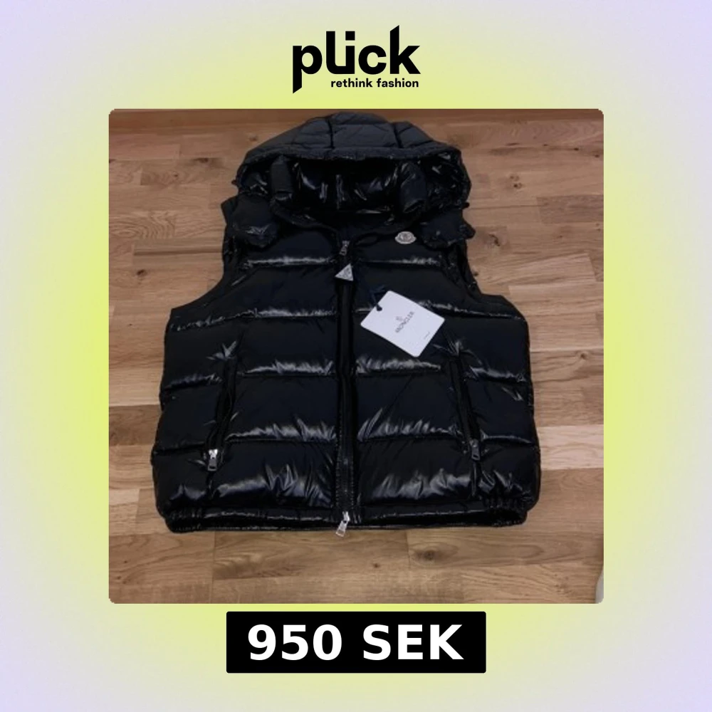 Svart, glansig dunväst från Moncler med avtagbar huva och två dragkedjeförsedda fickor. Västen har quiltad design, Moncler-logga på bröstet och coolt serietryck på insidan. Perfekt för att lyfta din streetstyle under kyliga dagar. Pris kan diskuteras